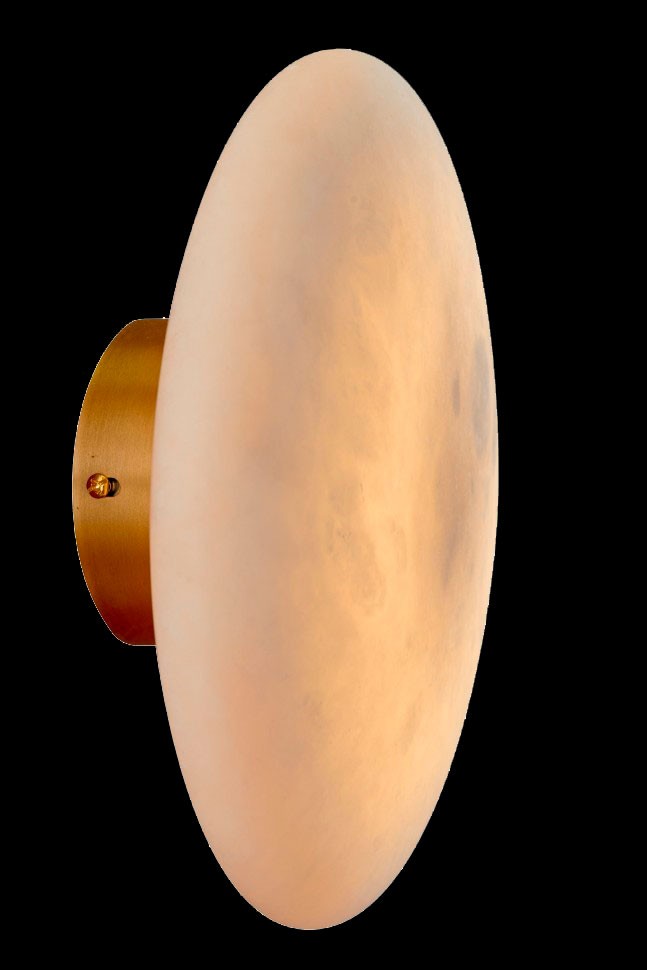 Плафоны выполнены из натурального испанского алебастра. Природная структура камня обретает неповторимую выразительность благодаря теплому свету. Поверхность включенных светильников напоминает настоящую Луну.