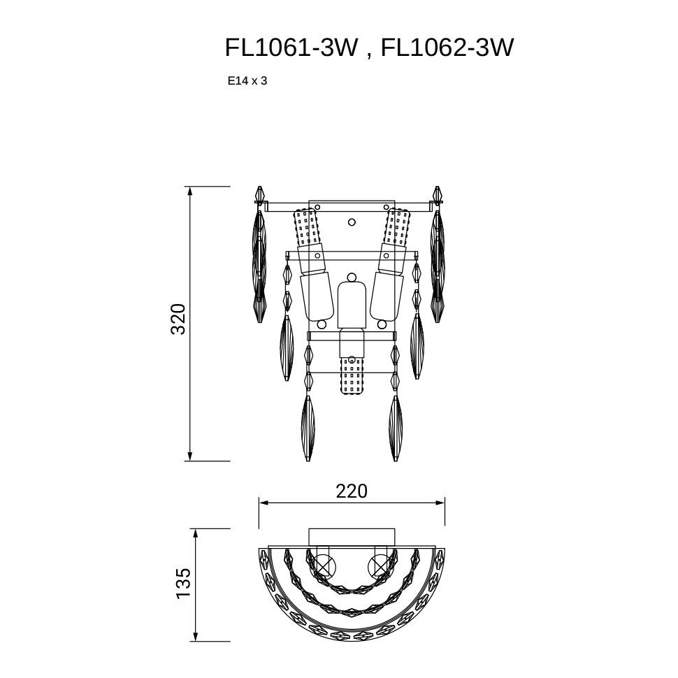 Бра The Empress Gold FL1061-3W, E14х3