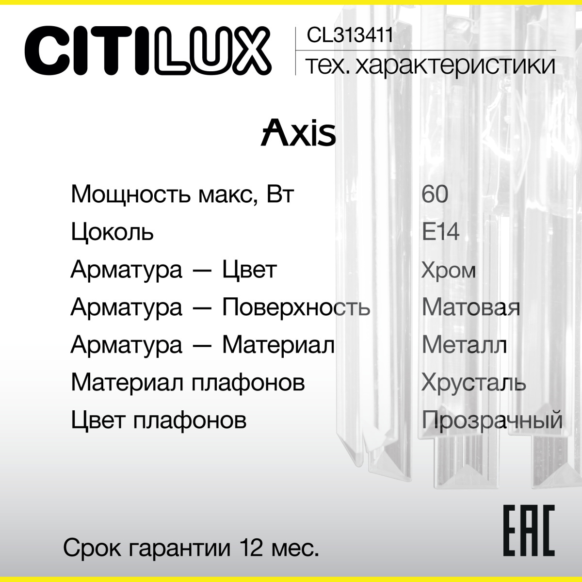 Citilux AXIS CL313411 Бра хрустальное с выключателем Хром