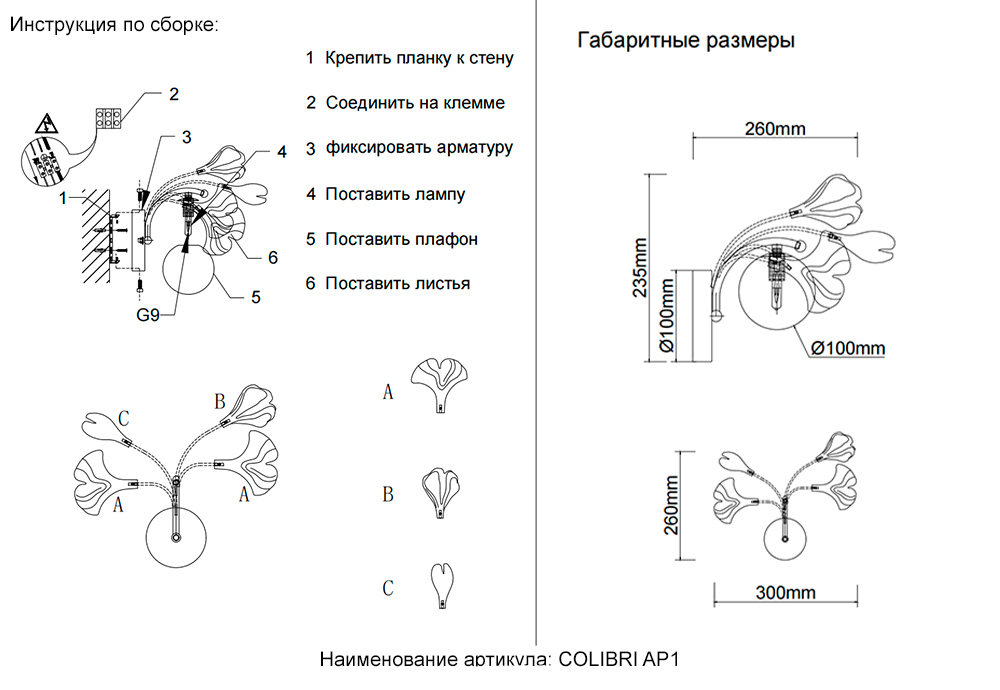 Бра Crystal Lux COLIBRI AP1 GOLD 0141/401