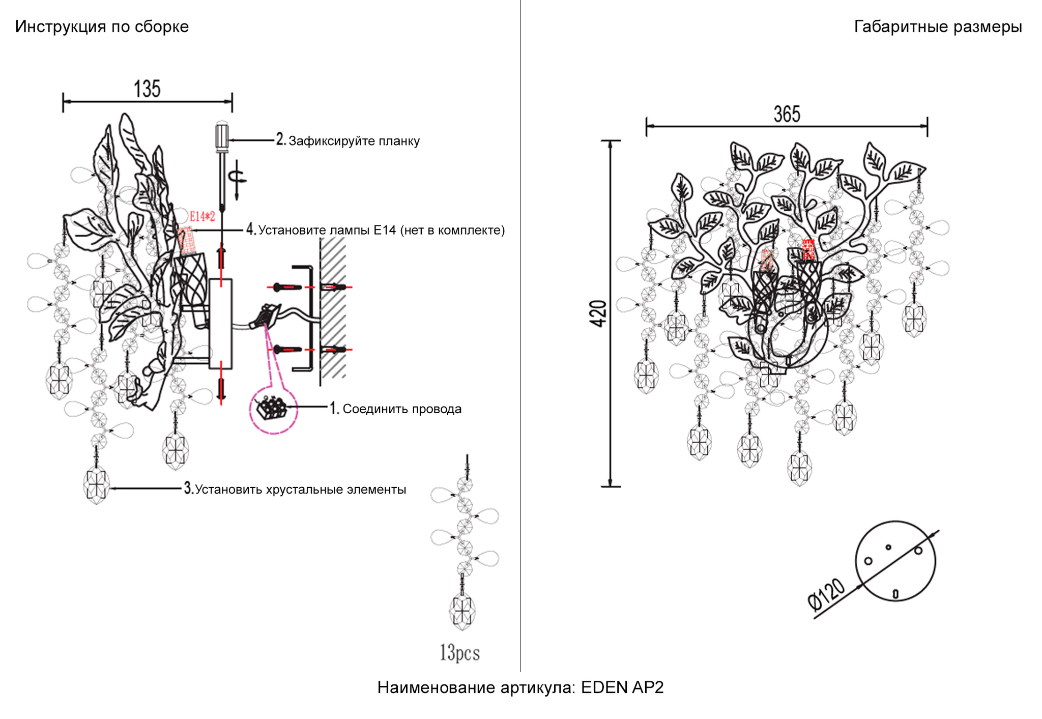 Бра Crystal Lux EDEN AP2 GOLD 3870/402
