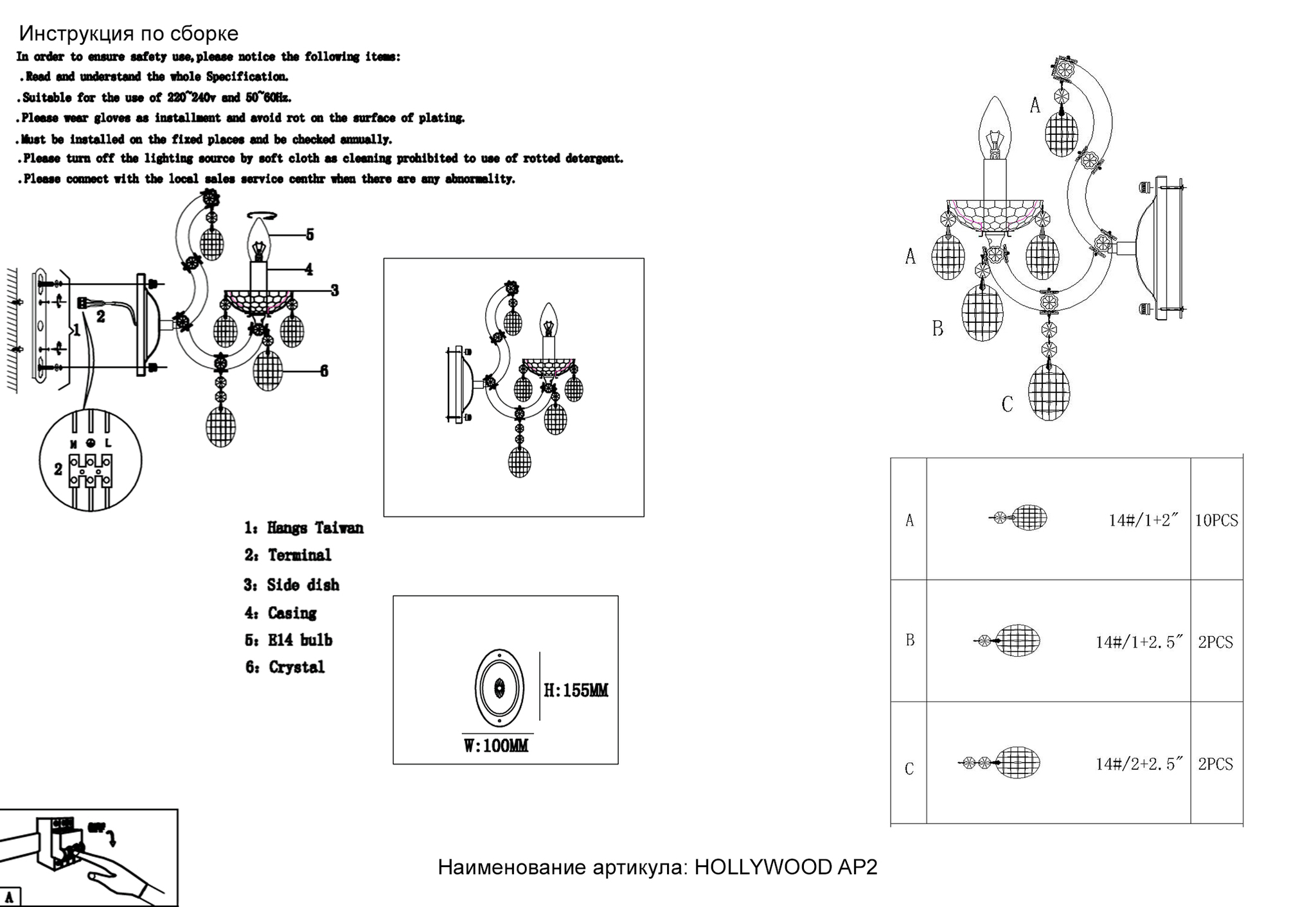Бра Crystal Lux HOLLYWOOD AP2 GOLD 2011/402