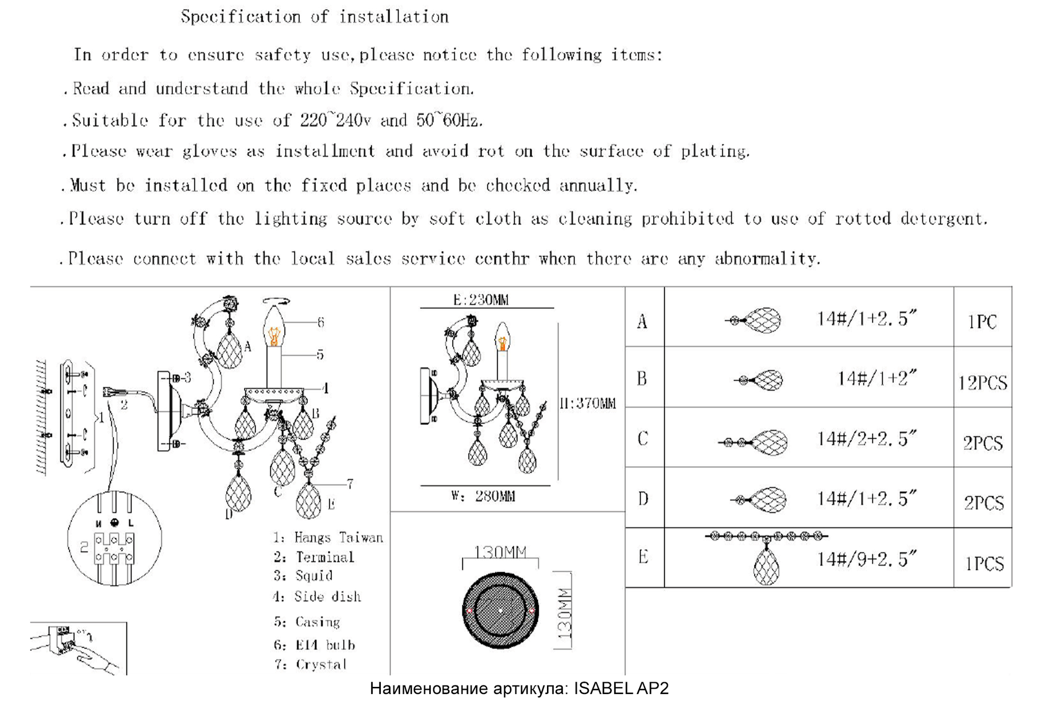 Бра Crystal Lux ISABEL AP2 GOLD/TRANSPARENT 2080/402