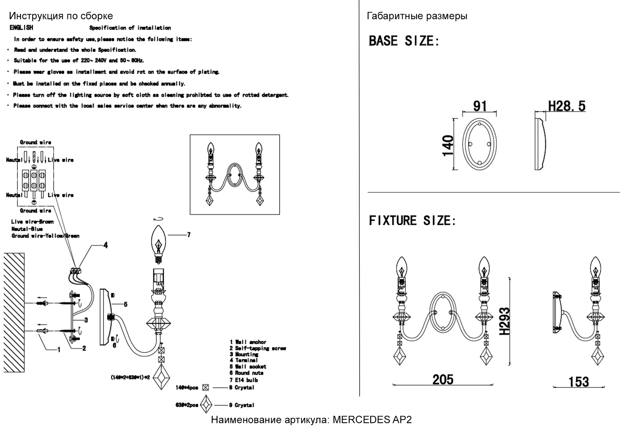 Бра Crystal Lux MERCEDES AP2 GOLD/COLOR 0951/402