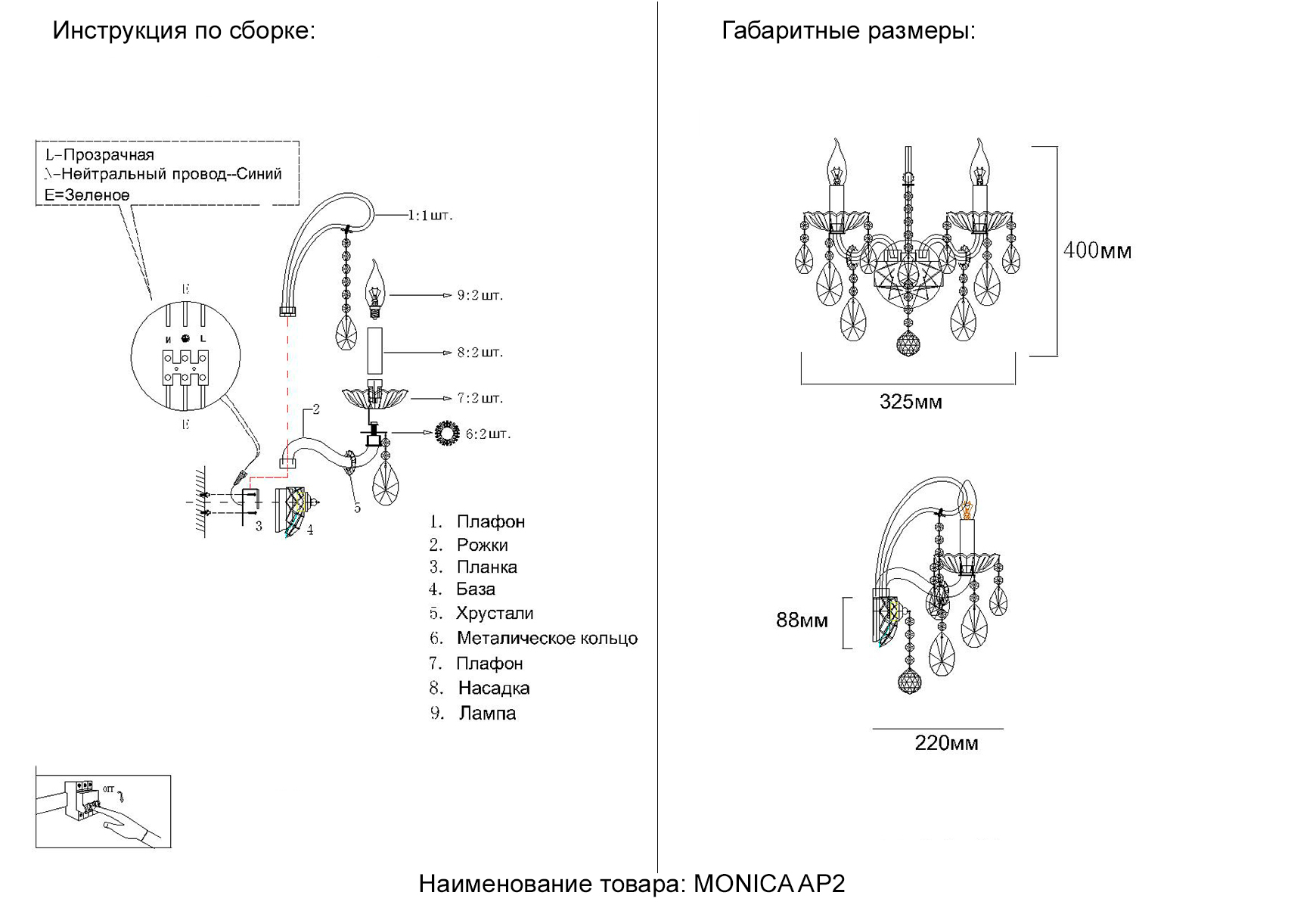 Бра Crystal Lux MONICA AP2 GOLD 2502/402