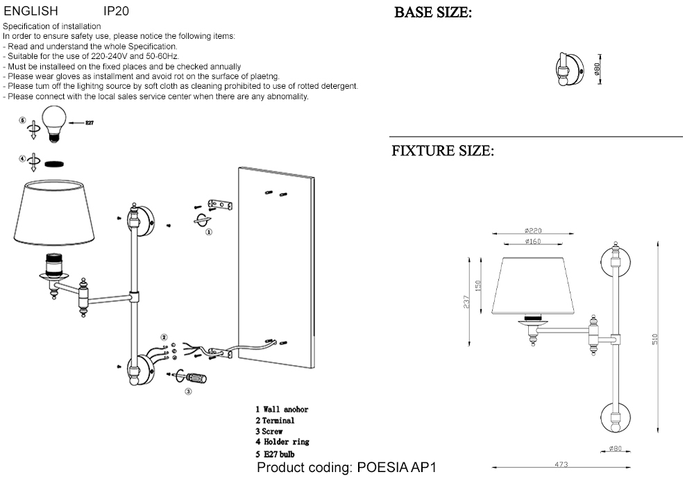 Бра Crystal Lux POESIA AP1 CHROME 2710/401