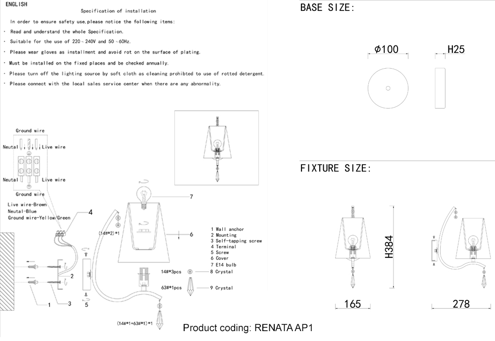 Бра Crystal Lux RENATA AP1 GOLD 3591/401