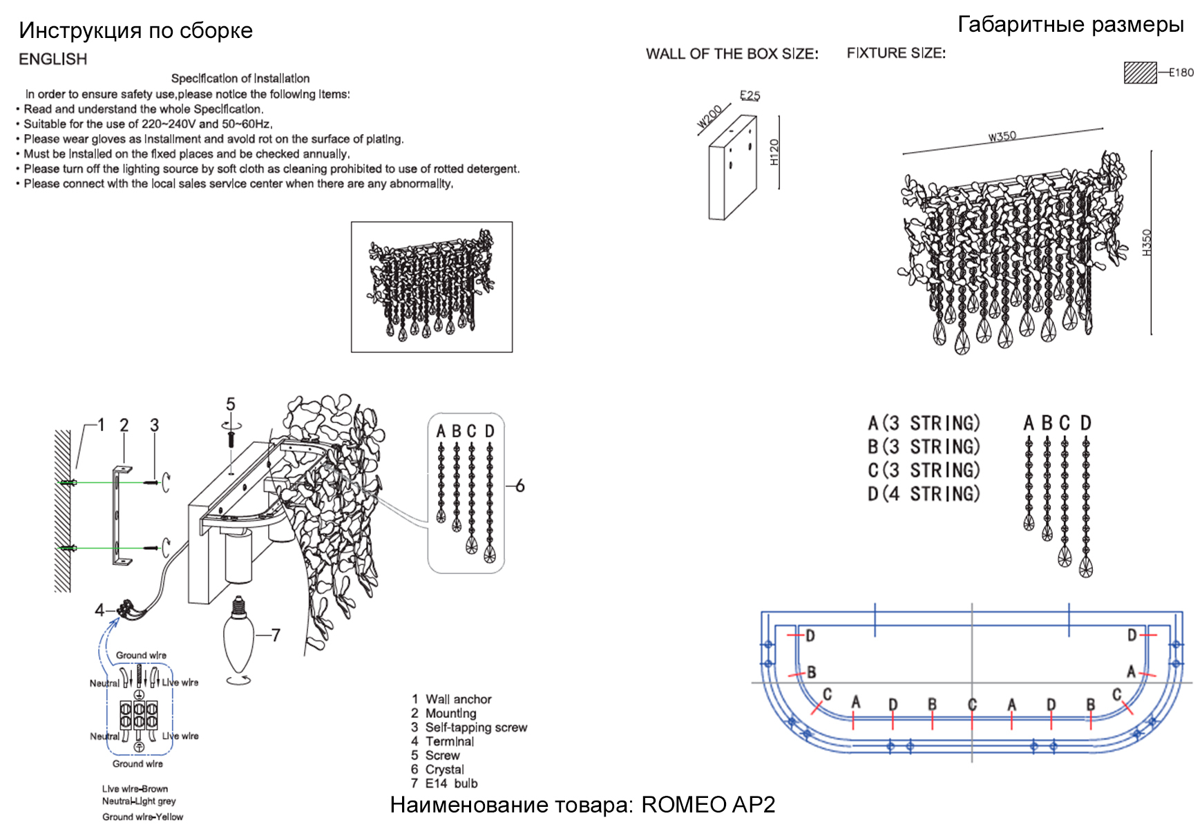 Бра Crystal Lux ROMEO AP2 GOLD 2831/402
