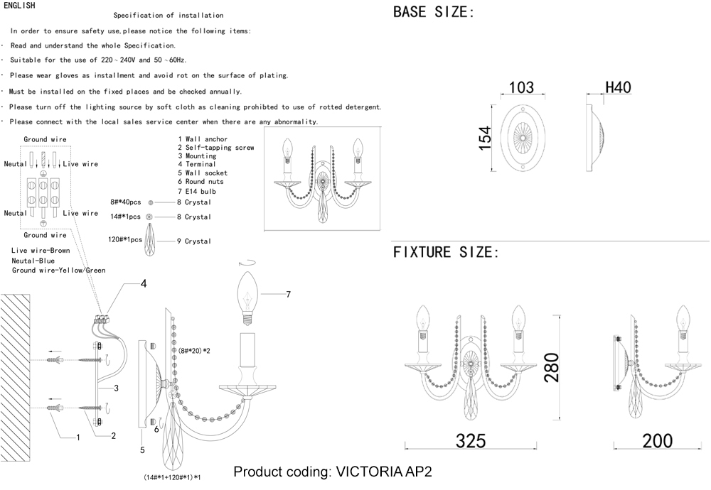 Бра Crystal Lux VICTORIA AP2 GOLD/AMBER 3340/402