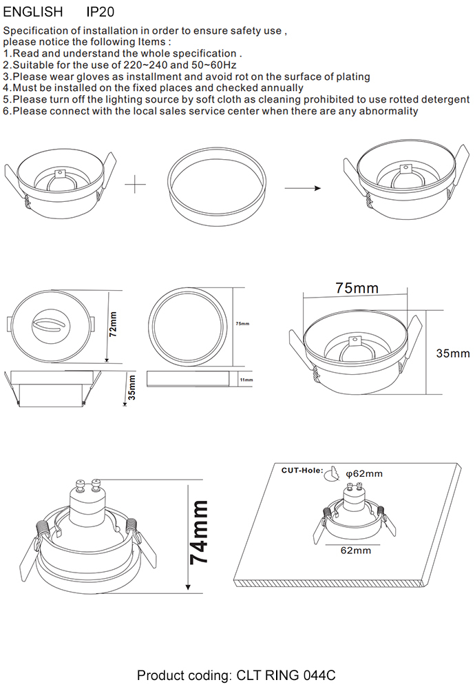 Декоративное кольцо внешнее Crystal Lux CLT RING 044C WH 0994/038