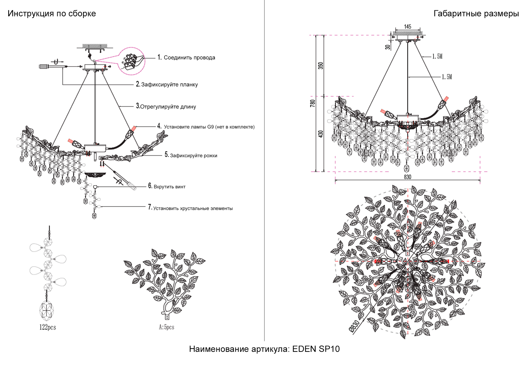 Люстра Crystal Lux EDEN SP10 GOLD 3870/310