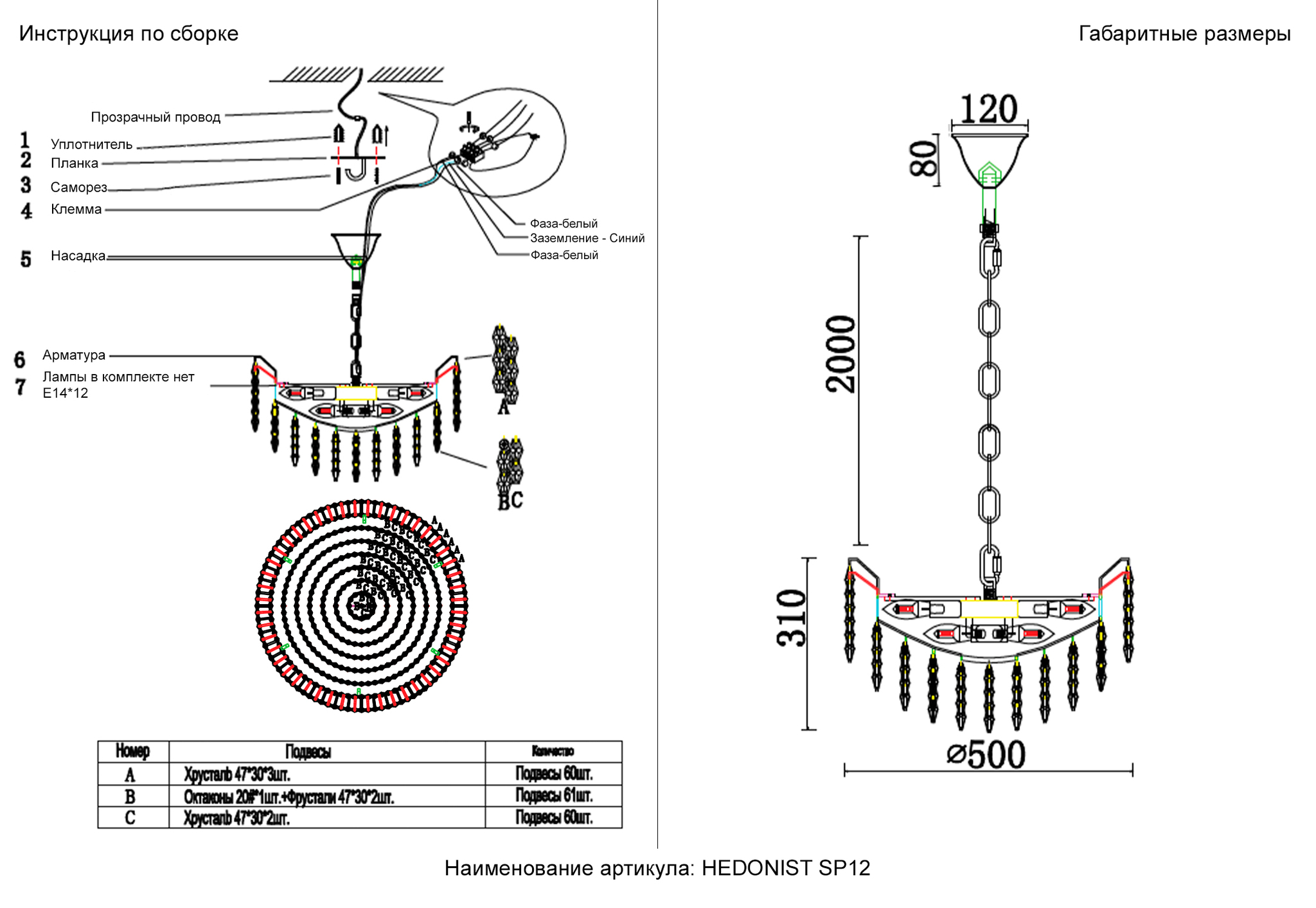 Люстра Crystal Lux HEDONIST SP12 3890/312