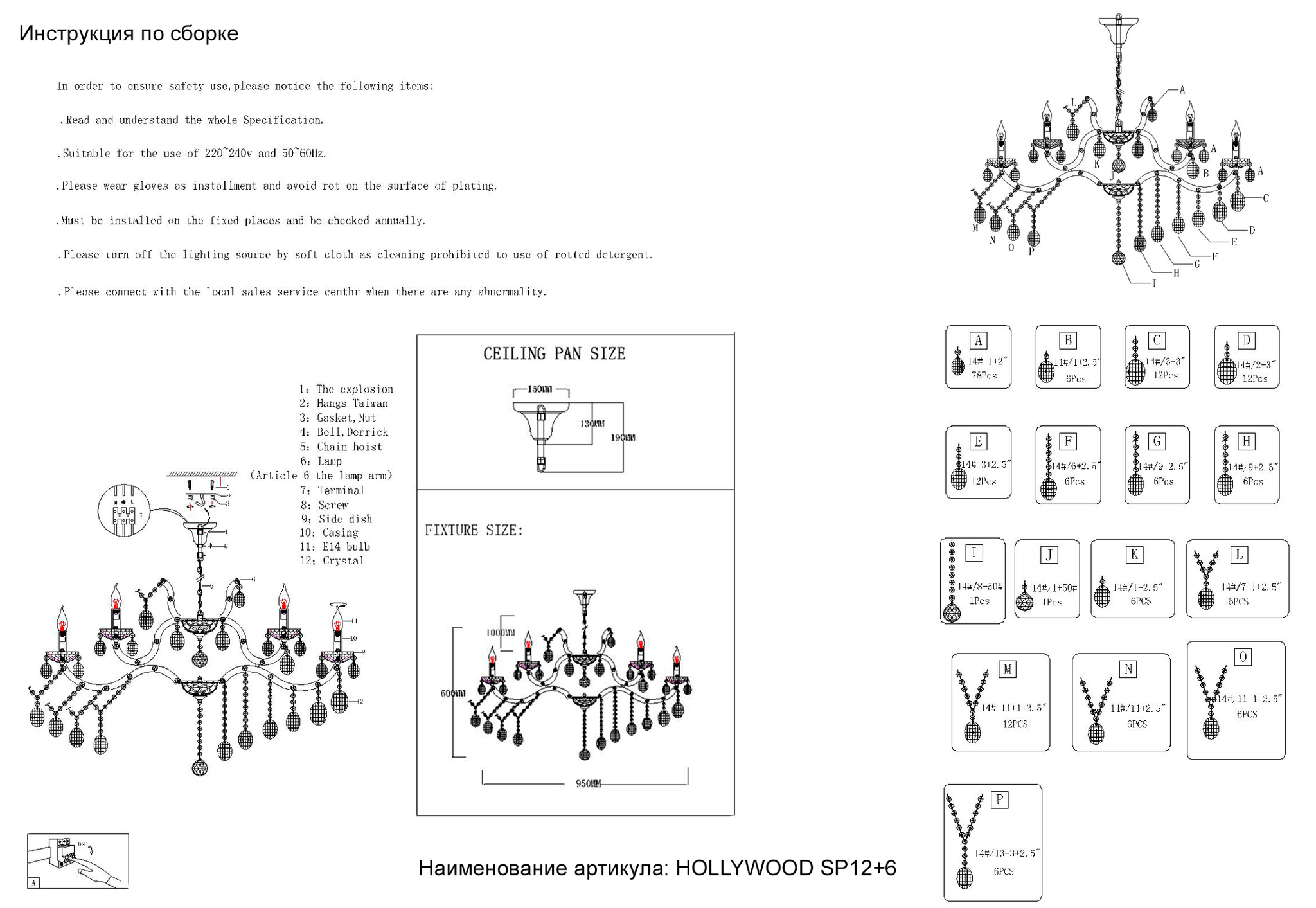 Люстра Crystal Lux HOLLYWOOD SP12+6 CHROME 2010/318