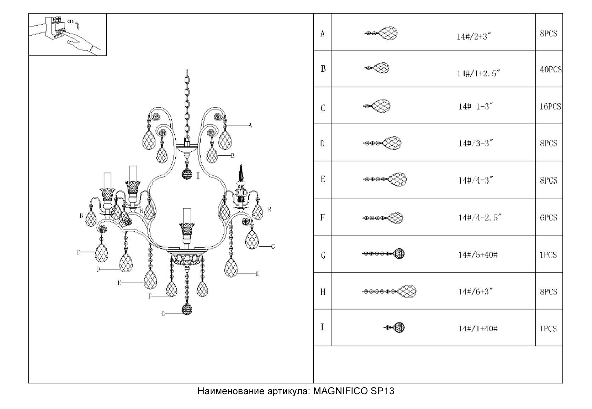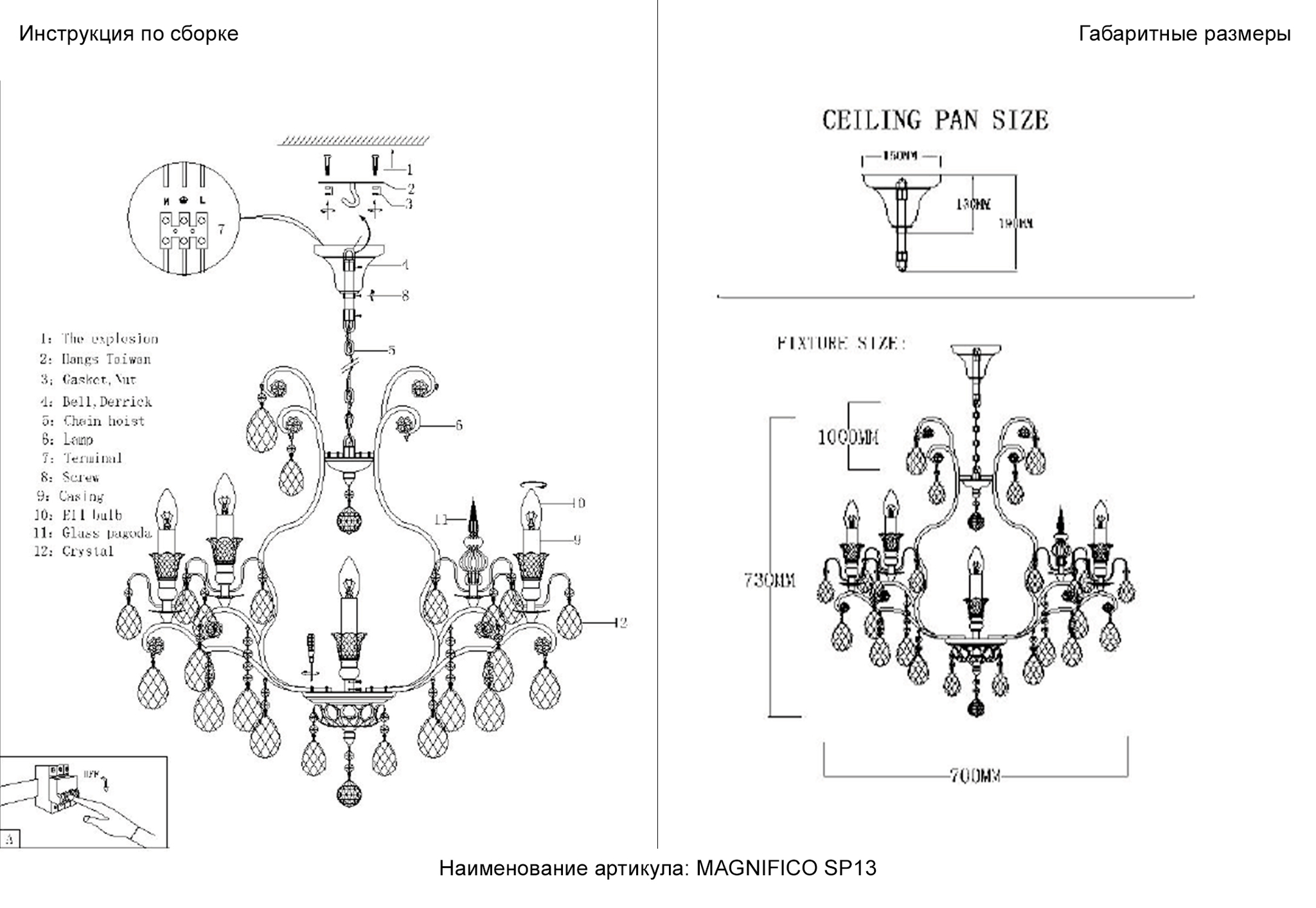 Люстра Crystal Lux MAGNIFICO SP13 BLACK/TRANSPARENT 2310/313