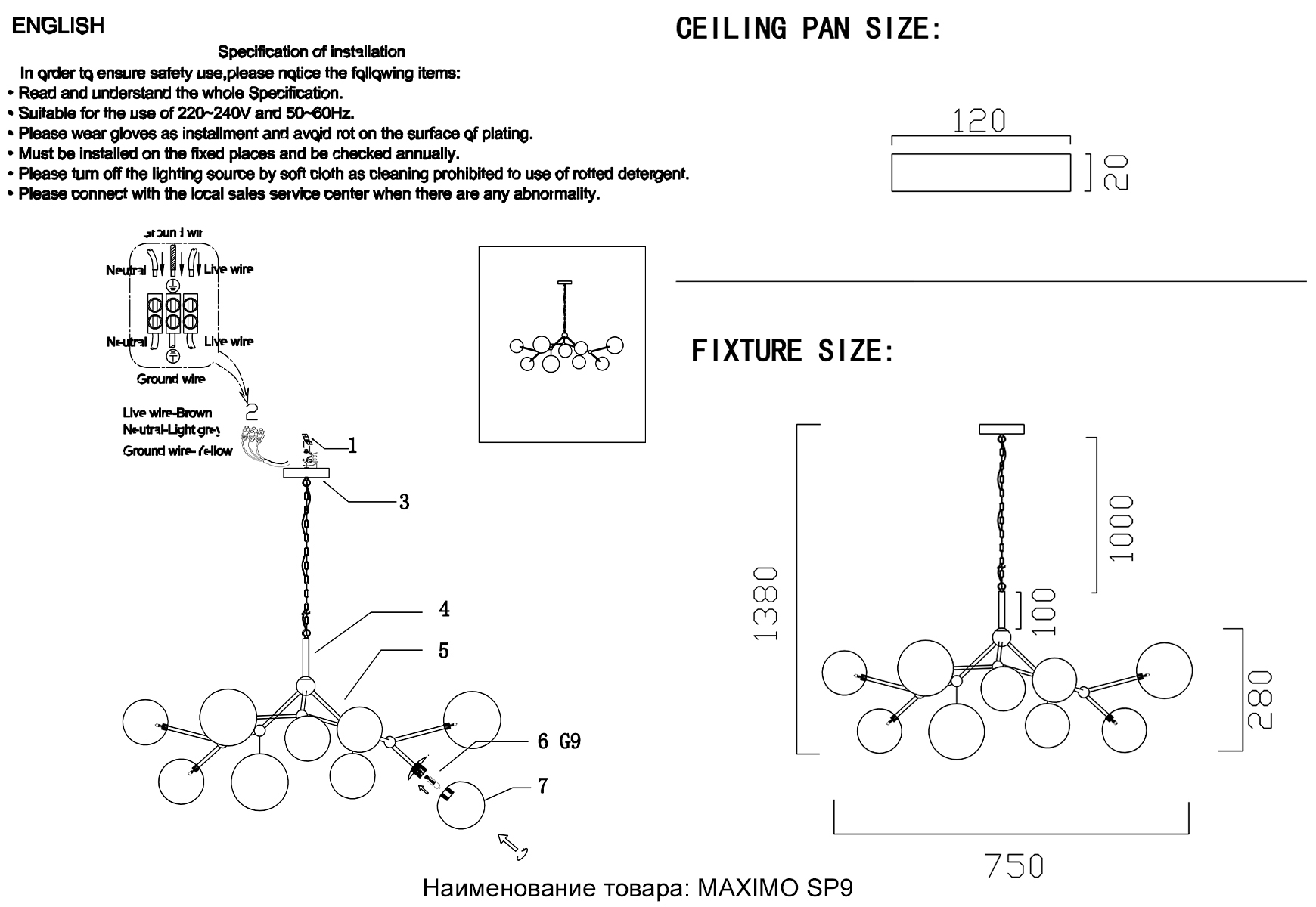Люстра Crystal Lux MAXIMO SP9 BRONZE 0930/309