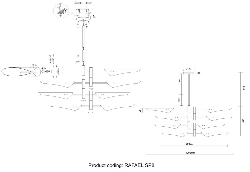 Люстра (без плафонов) Crystal Lux RAFAEL SP8 CHROME 3540/308