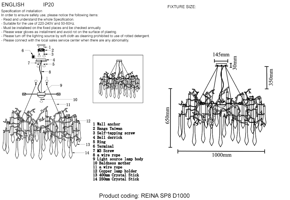 Люстра Crystal Lux REINA SP8 D1000 SILVER PATINA 3582/308