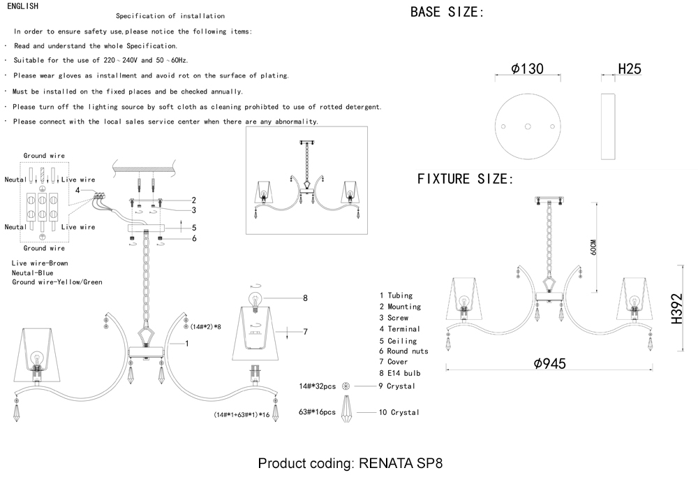 Люстра Crystal Lux RENATA SP8 GOLD 3591/308