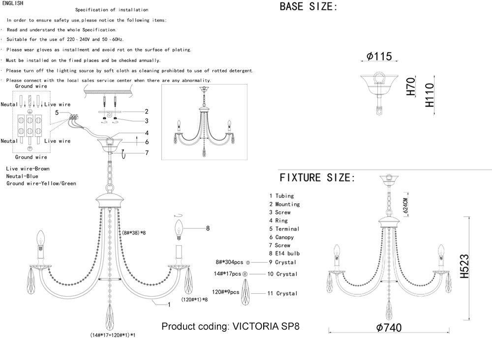 Люстра Crystal Lux VICTORIA SP8 GOLD/AMBER 3340/308