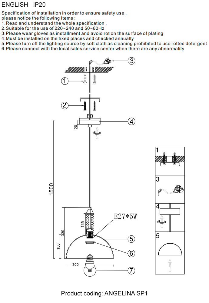 Светильник подвесной Crystal Lux ANGELINA SP1 NICKEL 0150/201