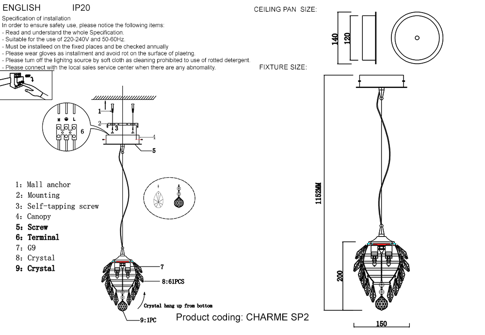 Светильник подвесной Crystal Lux CHARME SP2 CHROME/TRANSPARENT 1373/202