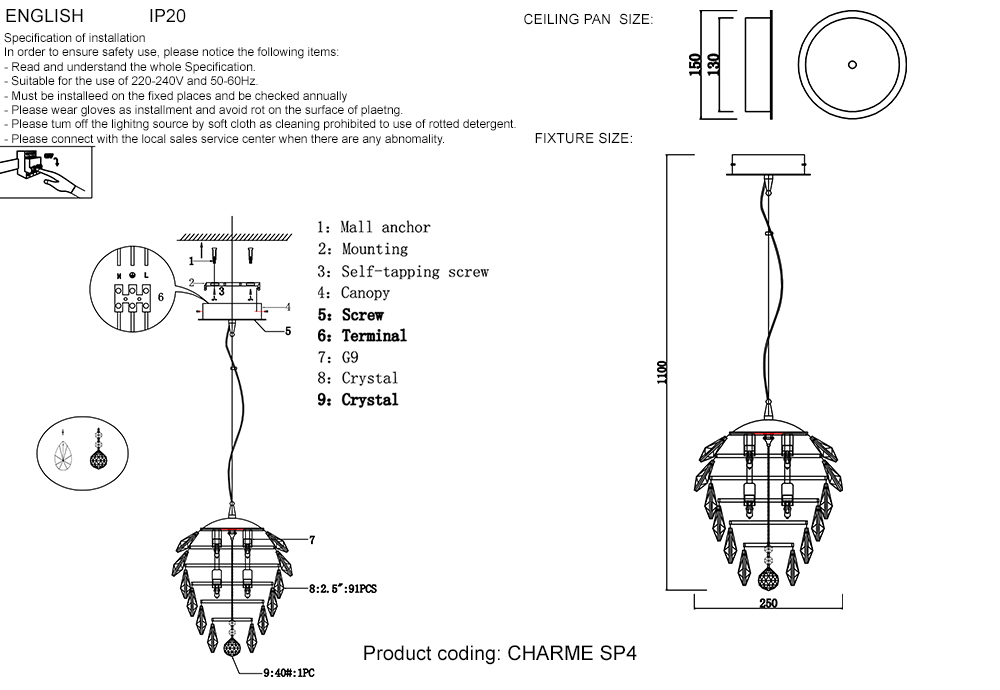 Светильник подвесной Crystal Lux CHARME SP4 GOLD/TRANSPARENT 1374/204