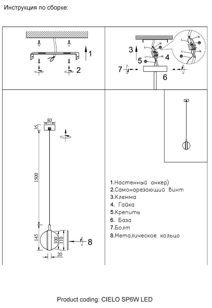 Светильник подвесной Crystal Lux CIELO SP6W LED GOLD 0370/201