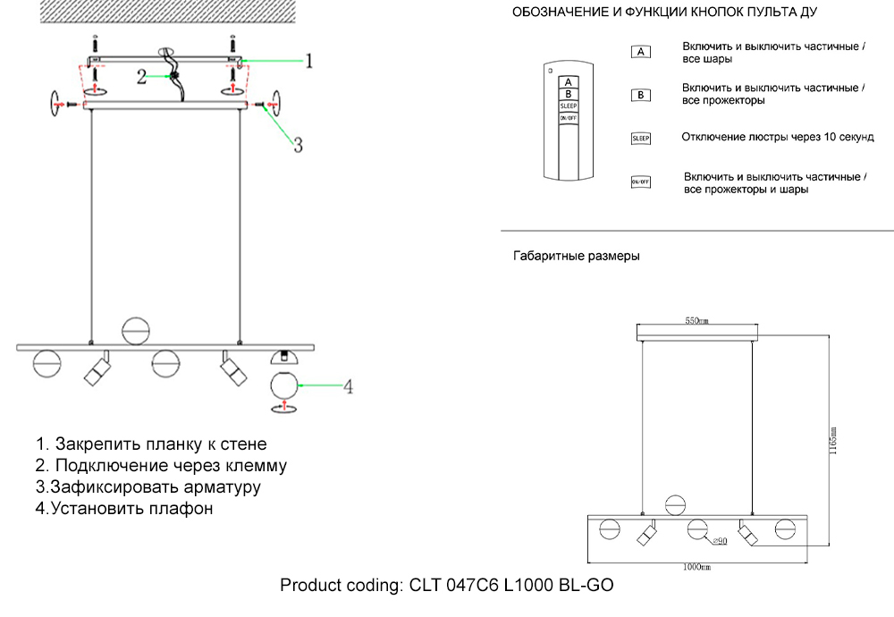 Светильник подвесной Crystal Lux CLT 047C6 L1000 BL-GO 1400/263