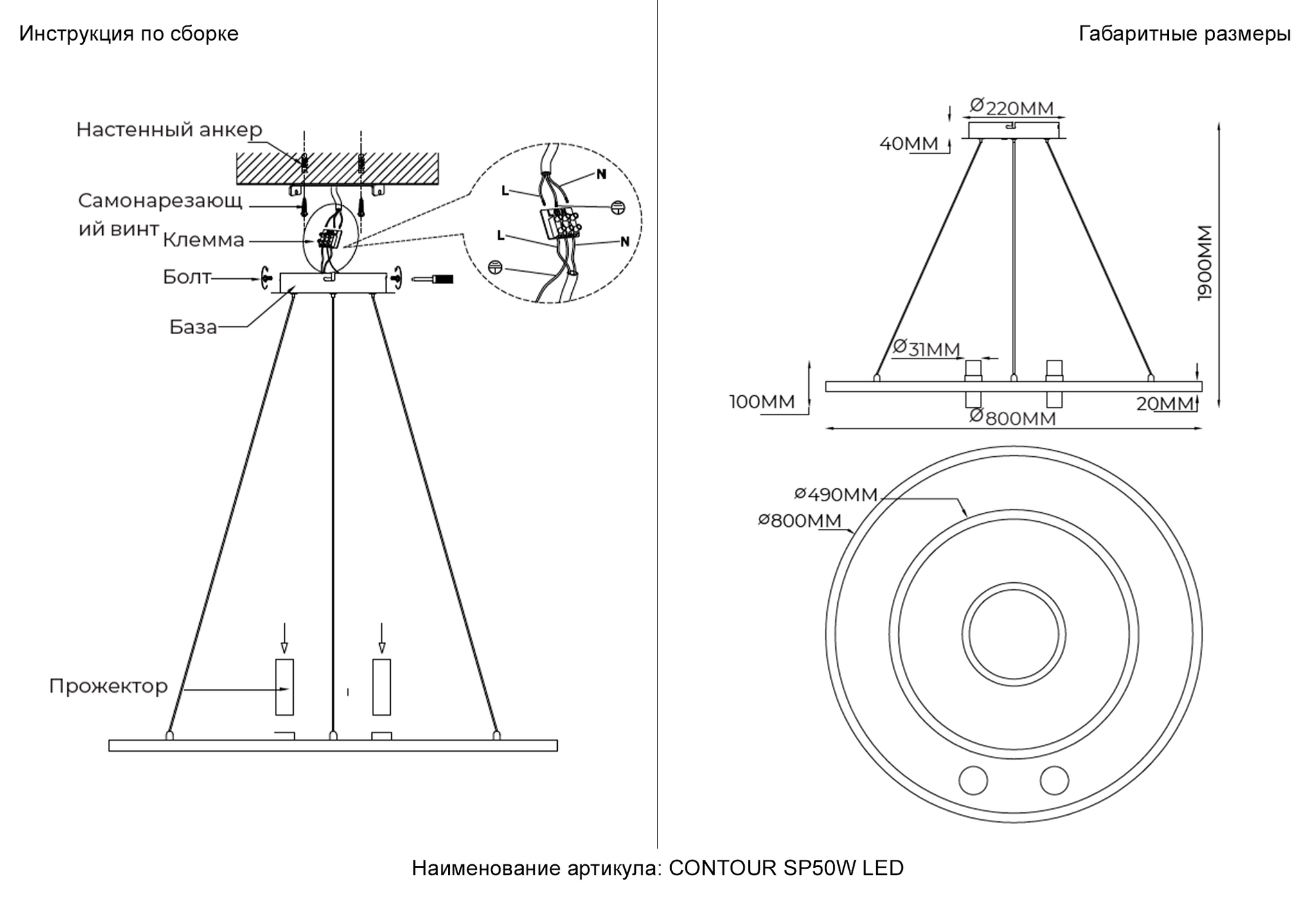 Светильник подвесной Crystal Lux CONTOUR SP50W LED BLACK 3800/250