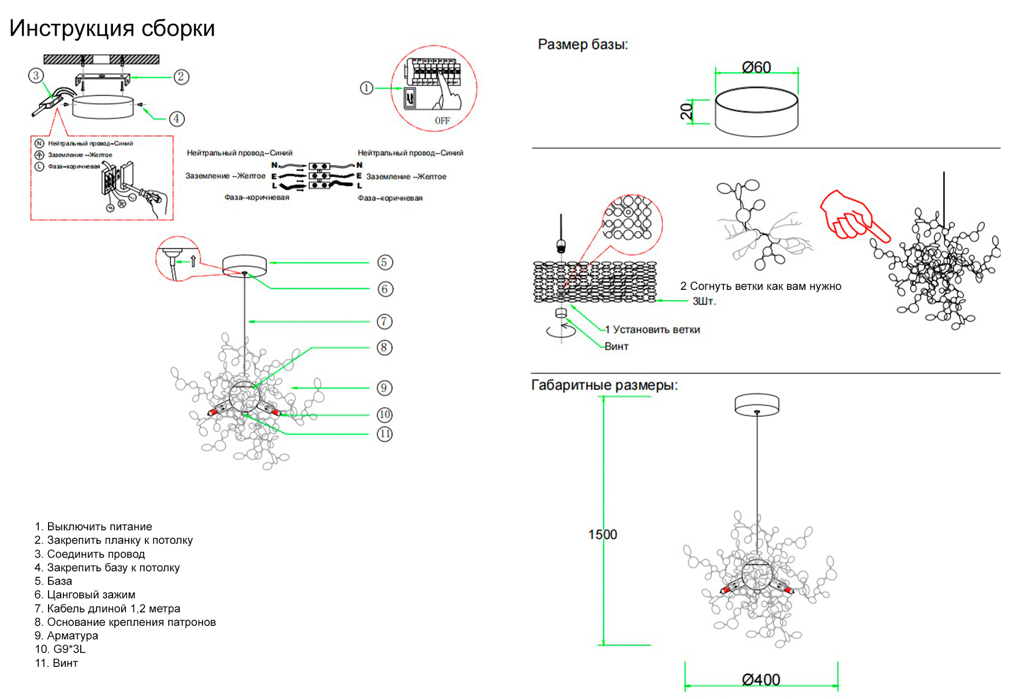 Светильник подвесной Crystal Lux GARDEN SP3 D400 CHROME 1861/203