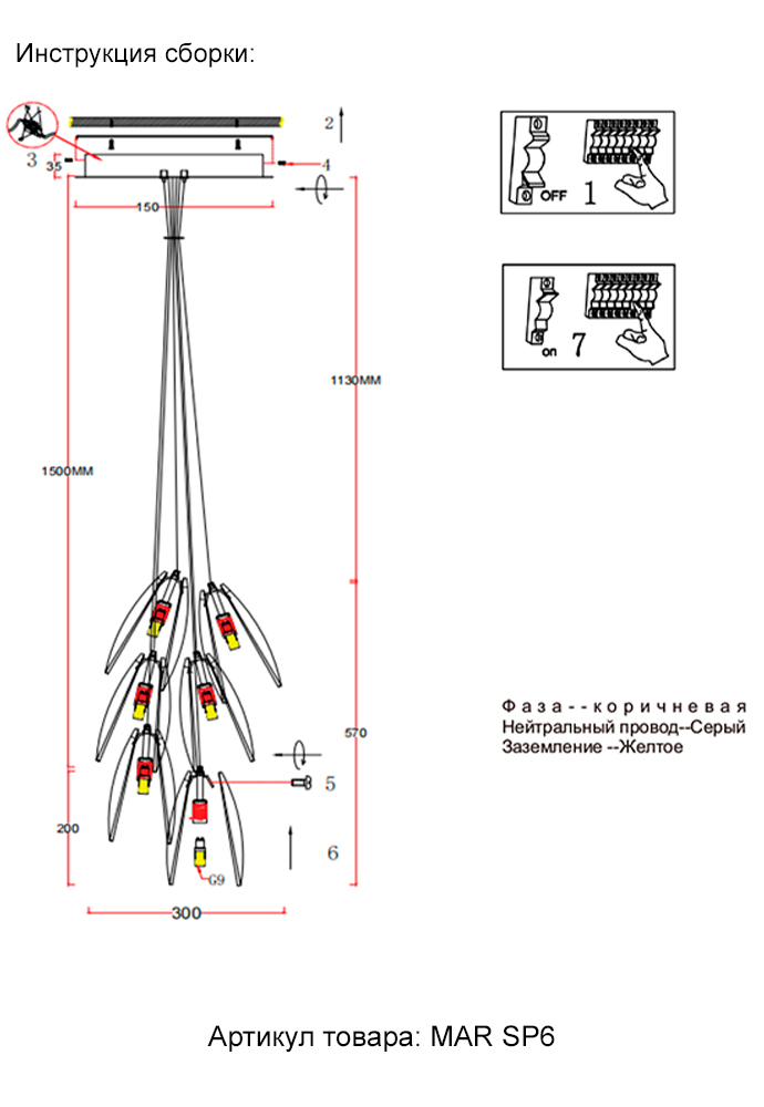 Светильник подвесной Crystal Lux MAR SP6 TRANSPARENTE 2350/206