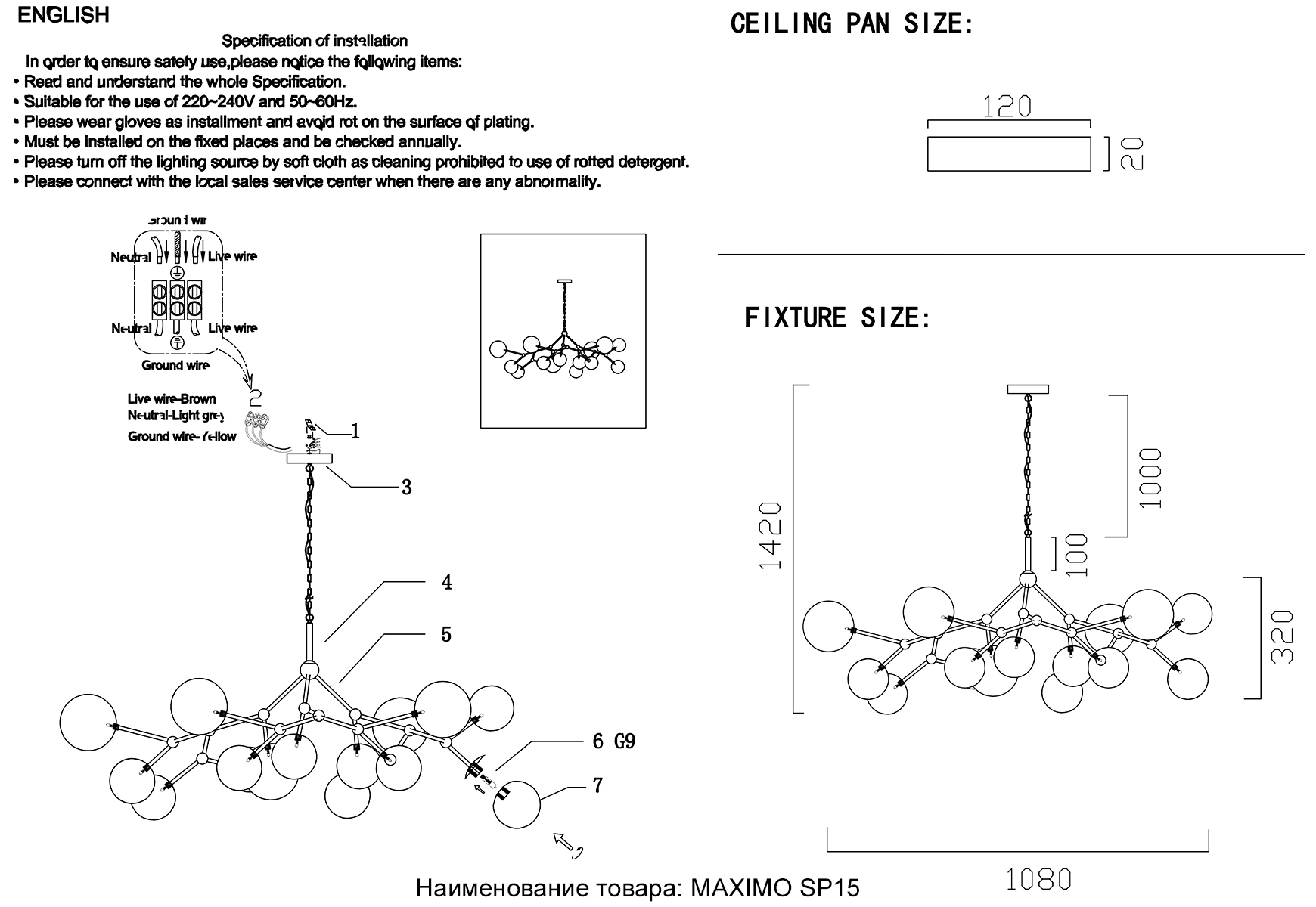 Светильник подвесной Crystal Lux MAXIMO SP15 BRONZE 0930/315