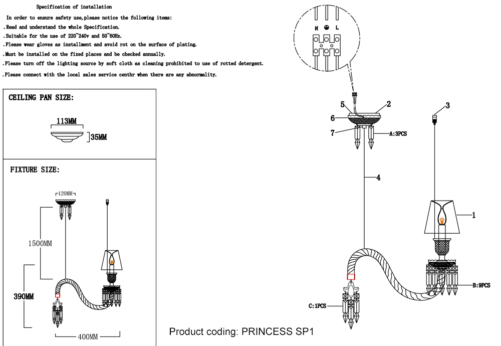 Светильник подвесной Crystal Lux PRINCESS SP1 2760/201