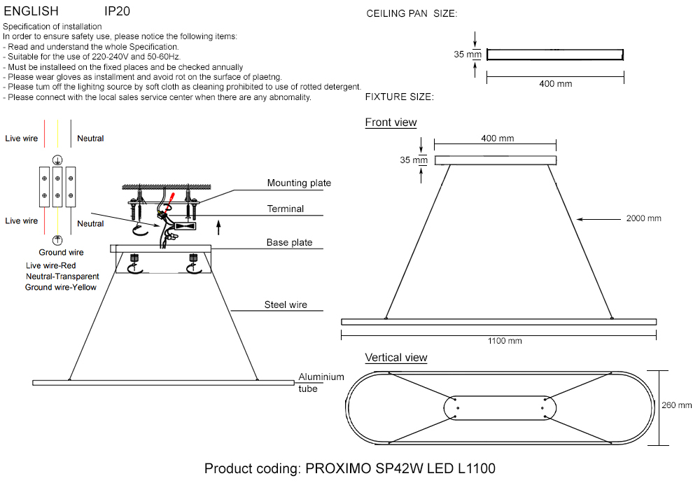 Светильник подвесной Crystal Lux PROXIMO SP42W LED L1100 BLACK 3530/242