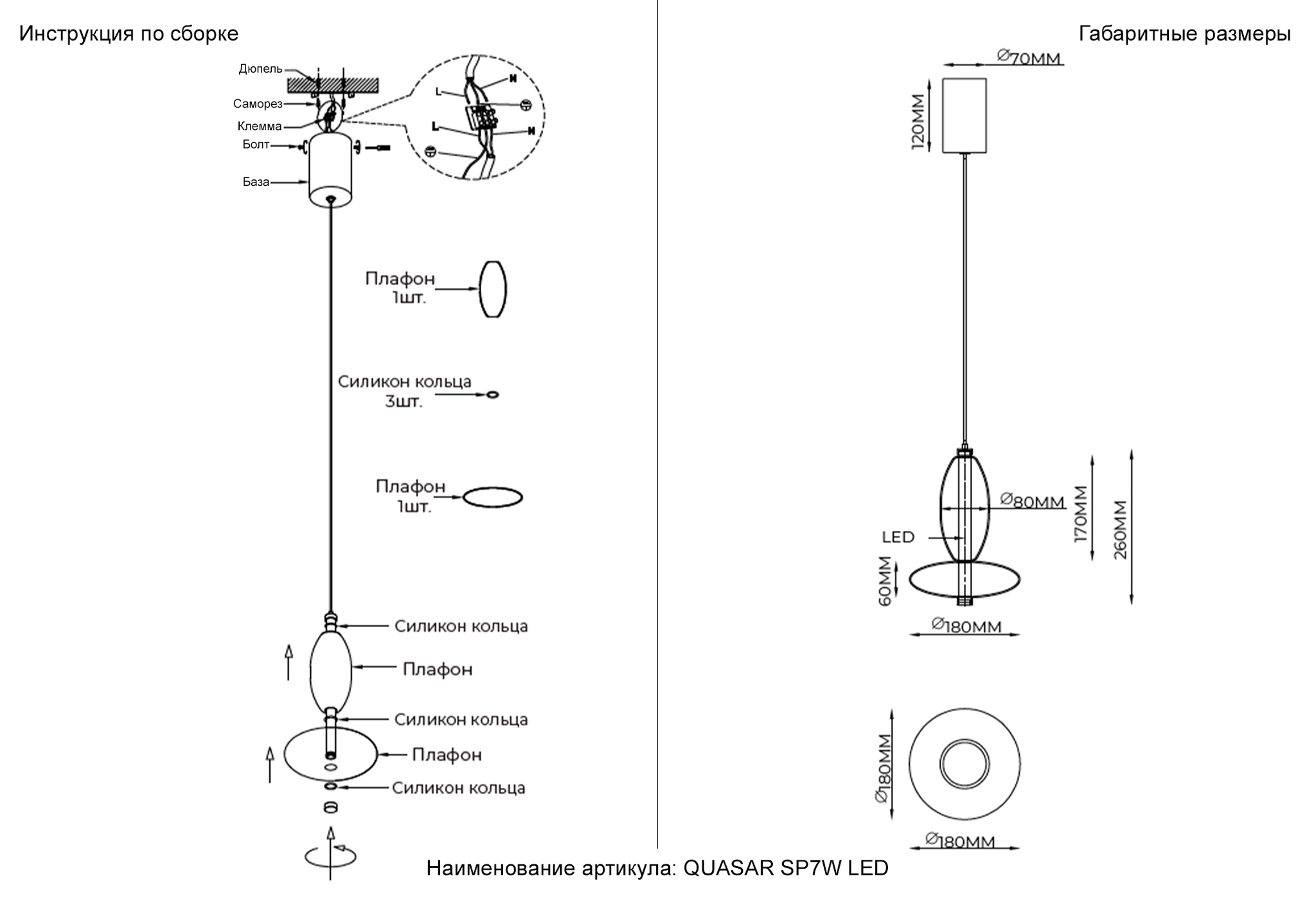 Светильник подвесной Crystal Lux QUASAR SP7W LED TRANSPARENT 3791/207