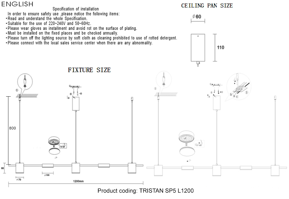 Светильник подвесной Crystal Lux TRISTAN SP5 L1200 BLACK 3690/205