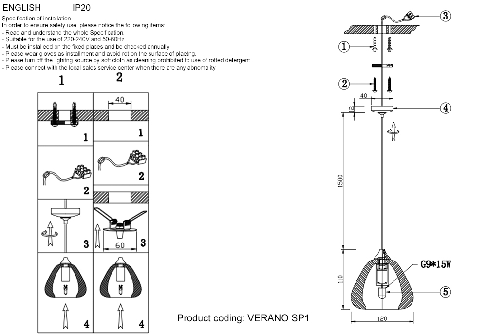 Светильник подвесной Crystal Lux VERANO SP1 SILVER 3711/201