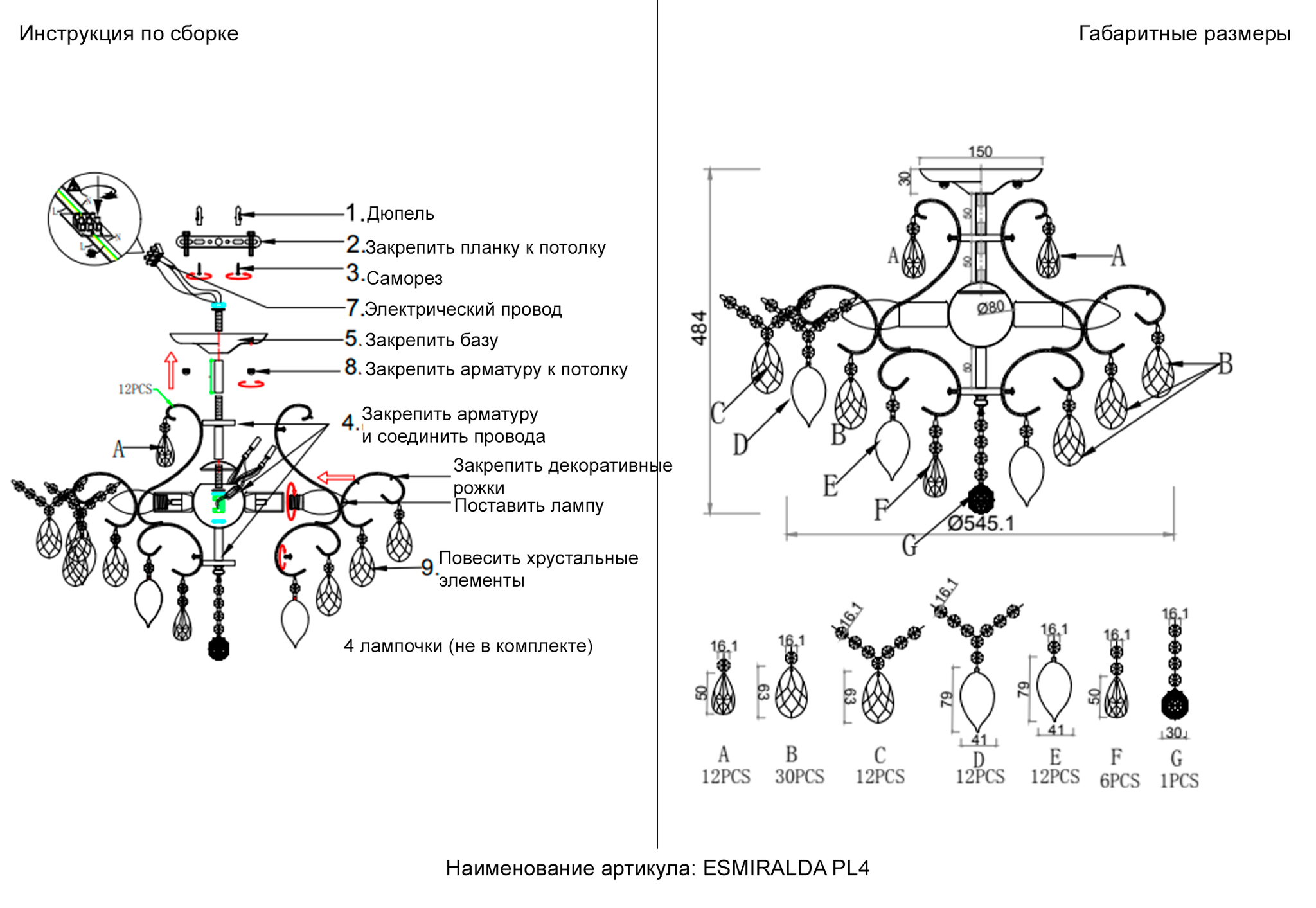 Светильник потолочный Crystal Lux ESMIRALDA PL4 GOLD 0523/104
