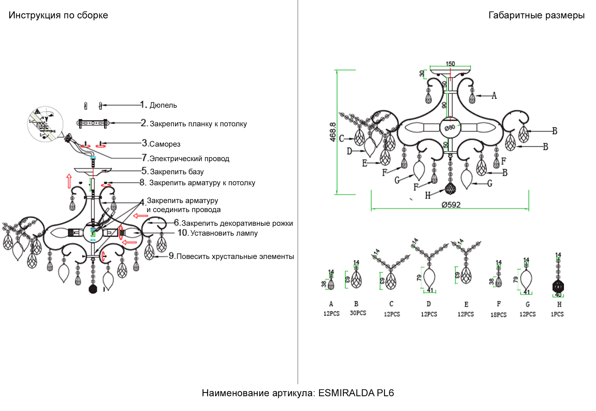 Светильник потолочный Crystal Lux ESMIRALDA PL6 SILVER 0524/106