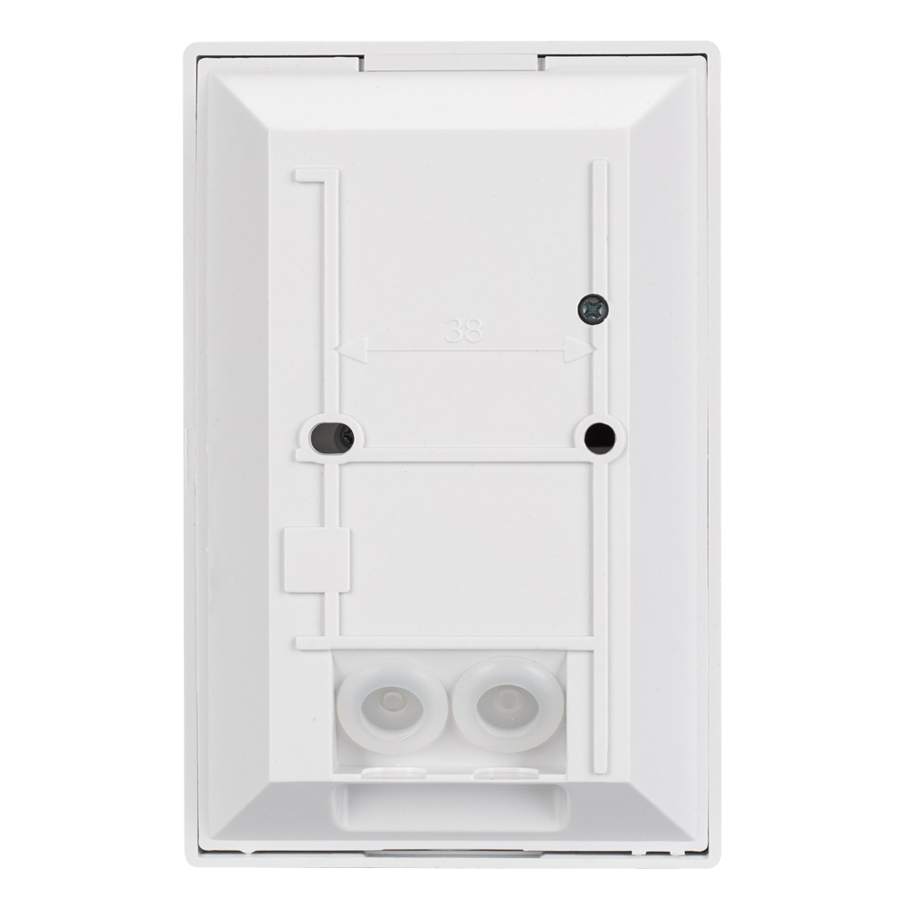 Настенный накладной датчик движения, совмещенный с датчиком освещенности, регулировка времени (10с–15мин), расстояния (до 12 м), освещенности (3-2000люкс), нагрузка 300 Вт (для энергосберегающих и светодиодных ламп), нагрузка 1200 Вт (для ламп накаливания), цвет белый, размеры 120x78x28мм, вес 166 г. Высота установки 1,8-2,5м.