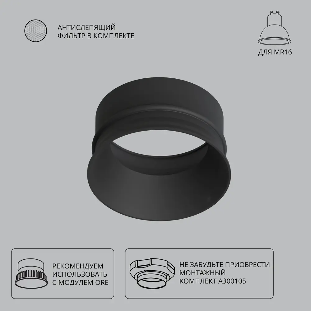 Декоративная рамка для безрамочного светильника Arte Lamp INTER A3010PL-1BK, GU10