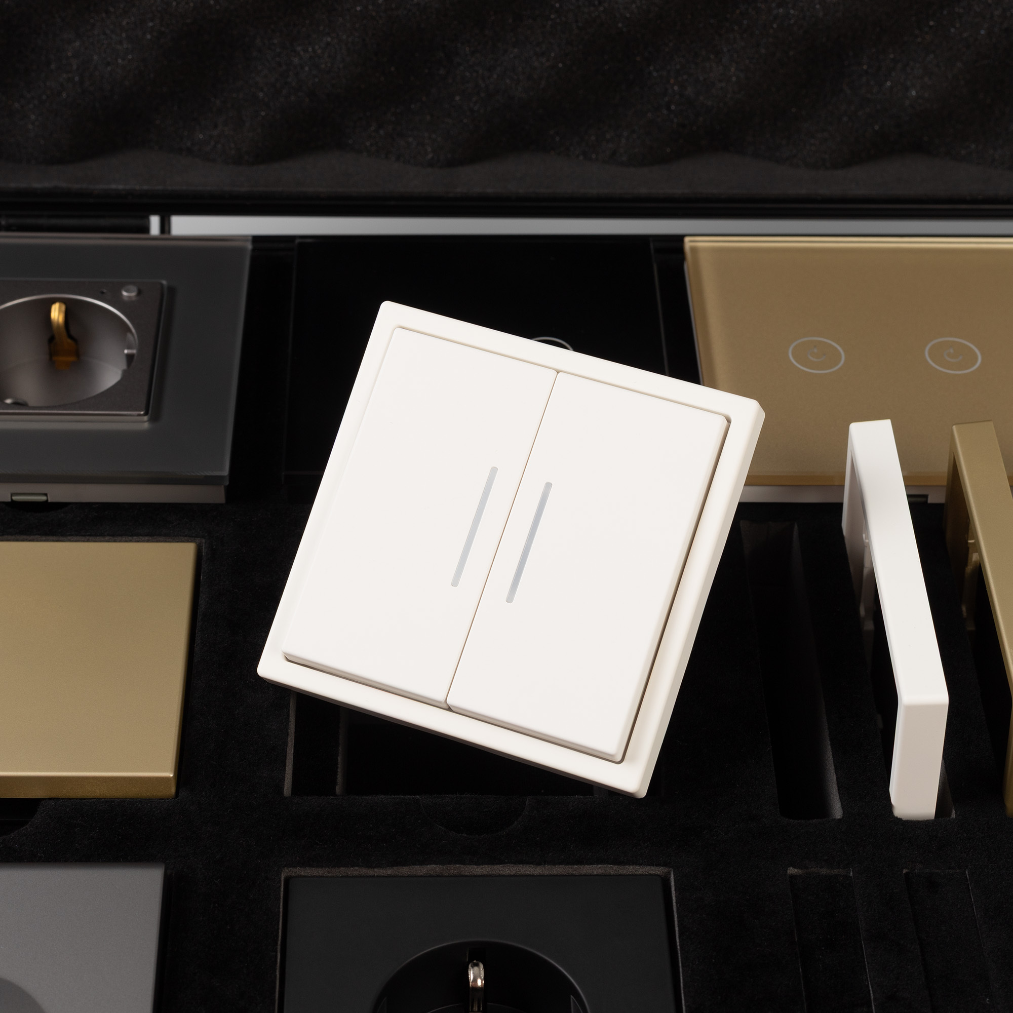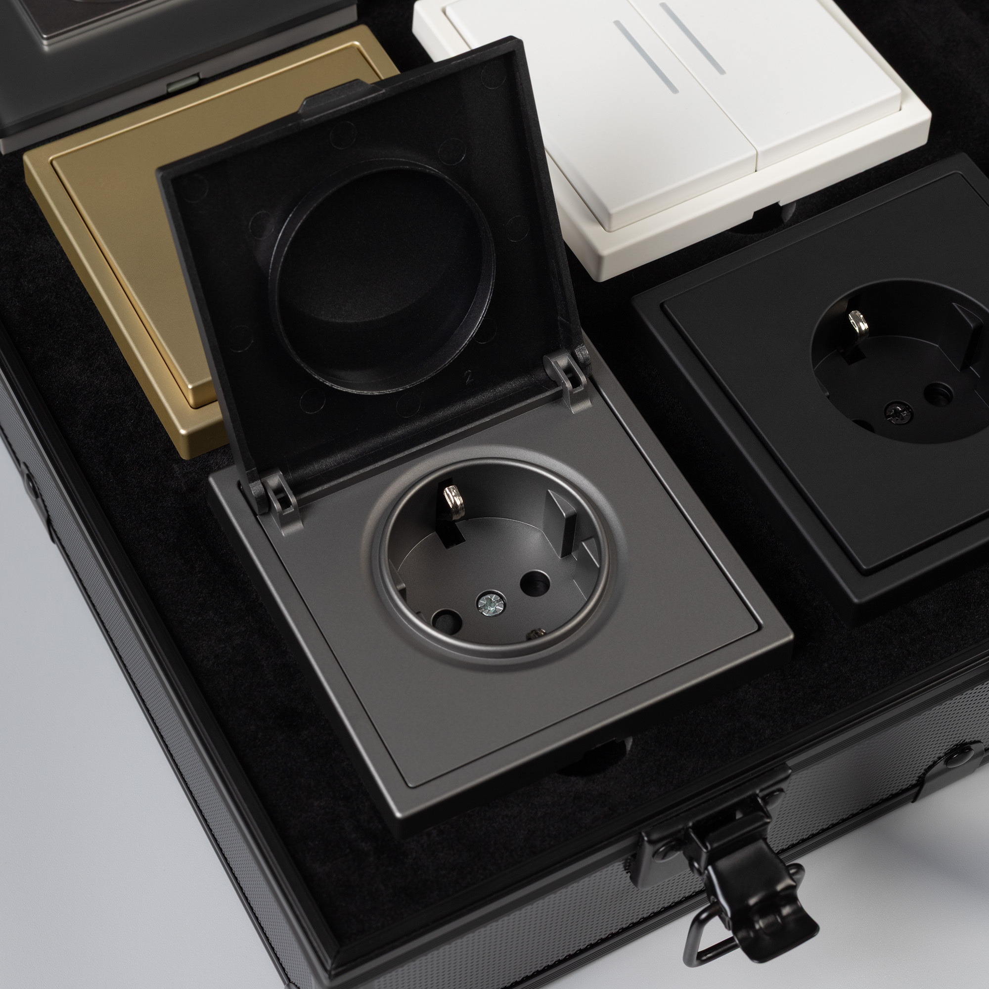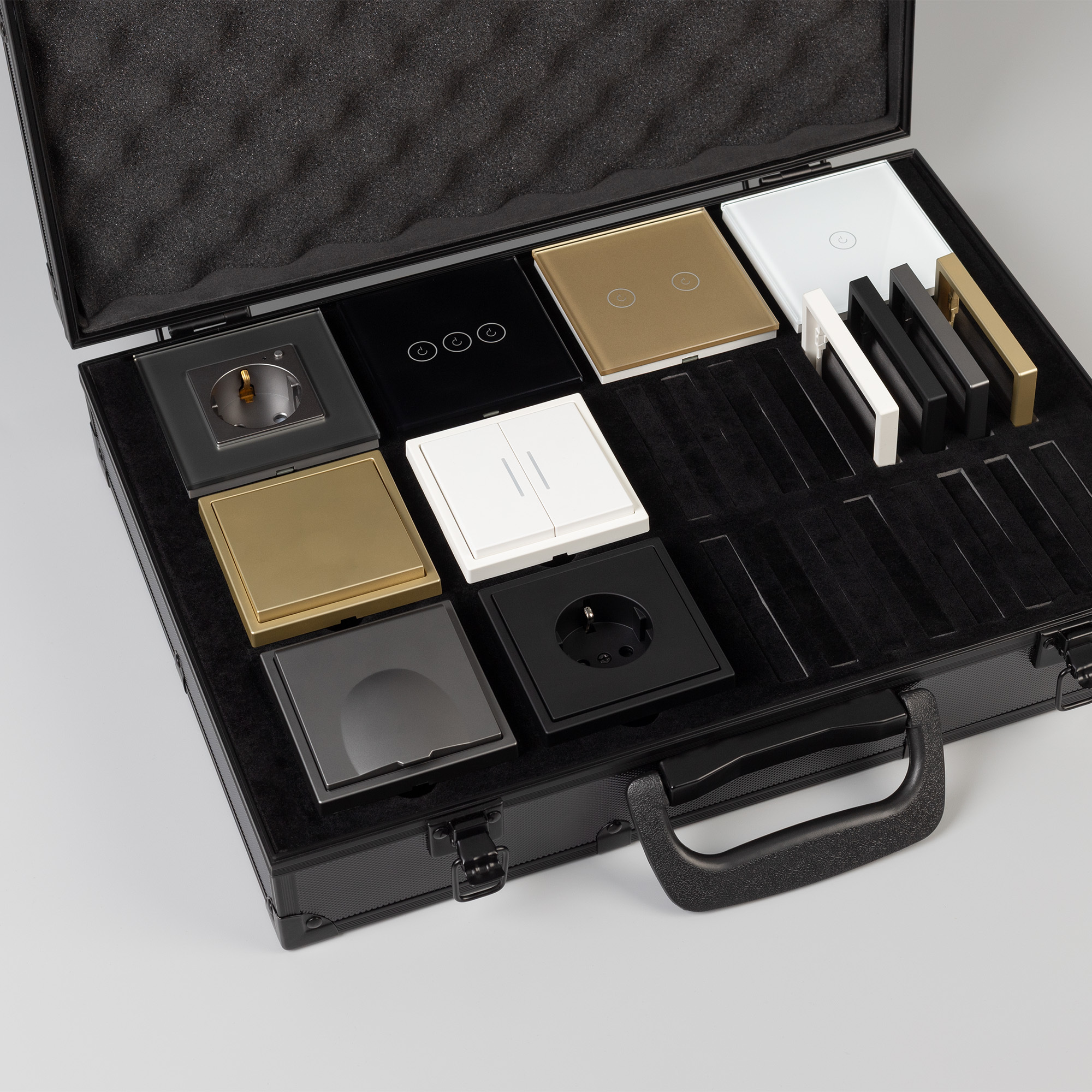 Демо-кейс с наполнением для демонстрации продукции ЭУИ серии NOBE и OMALI. Материал: Алюминий + вспененный полиуретан. Ячейки для размещения: 8 мест под механизмы и 16 мест под однопостовые рамки. Габаритные размеры кейса: 280*400*100мм. Размер под логотип: 260*380мм