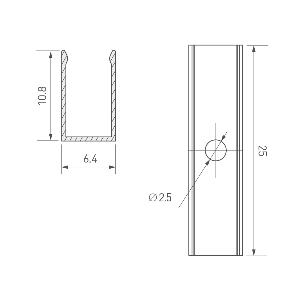 Клипса из анодированного алюминия для гибкого неона AURORA сечения 12х6мм. Длина 25 мм, ширина 6.4 мм.
