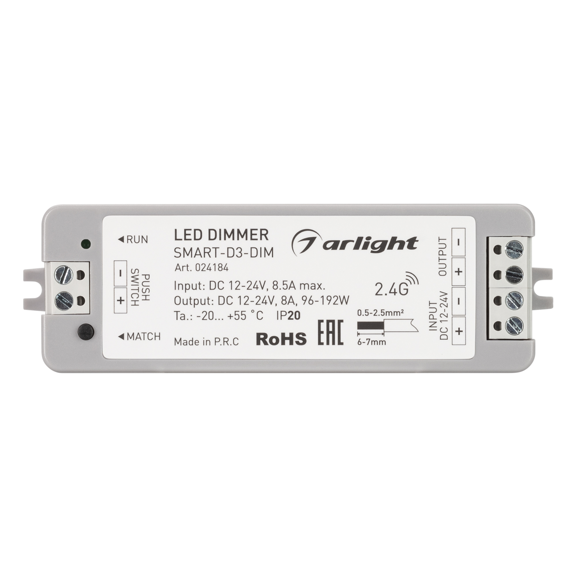 Диммер SMART-D3-DIM (12-24V, 8A, 2.4G) (Arlight, IP20 Пластик, 5 лет)