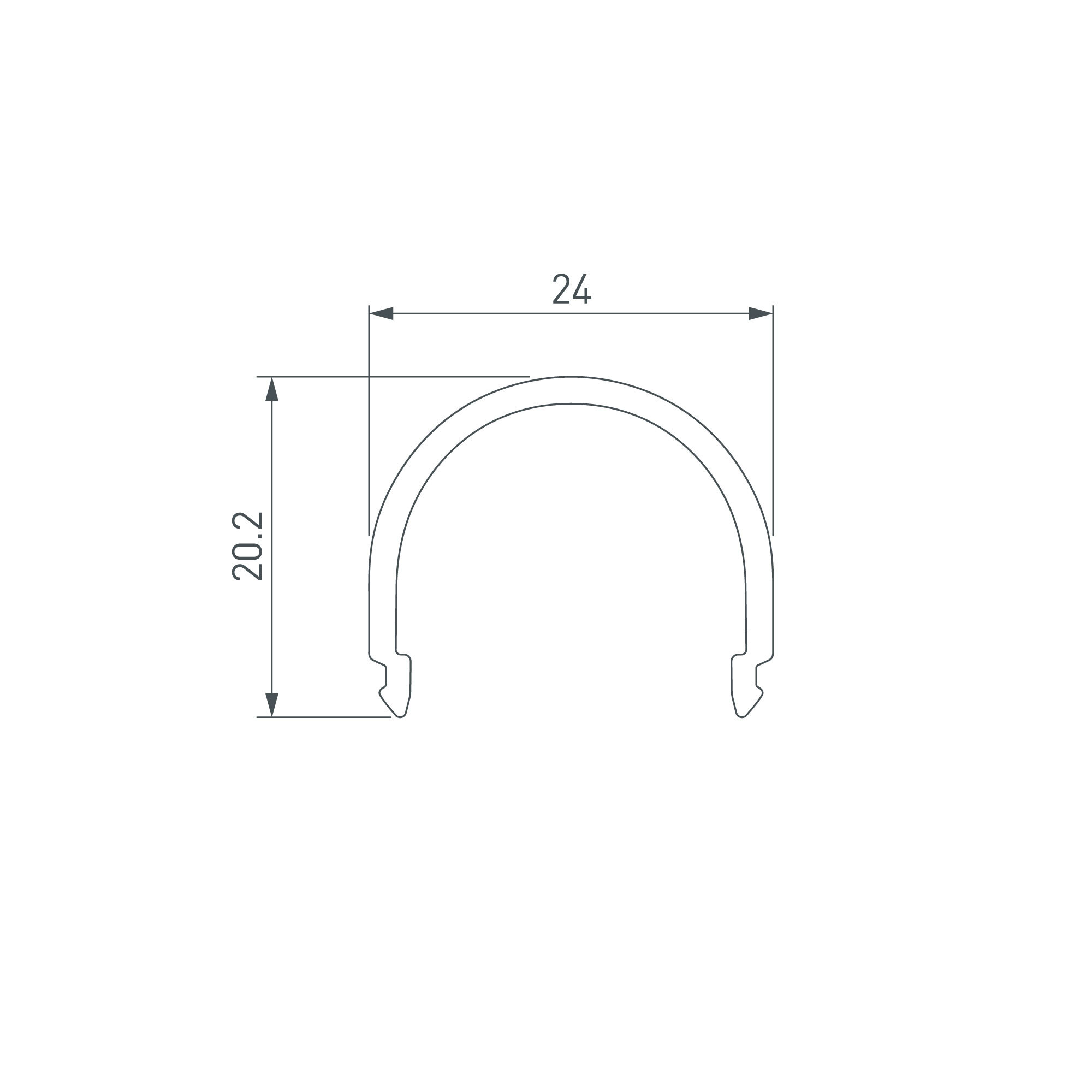 Прозрачный круглый экран (рассеиватель) для профиля PLS-GIP. УФ-защита. Размеры 2000х24.3х19.7 мм. Материал PMMA.