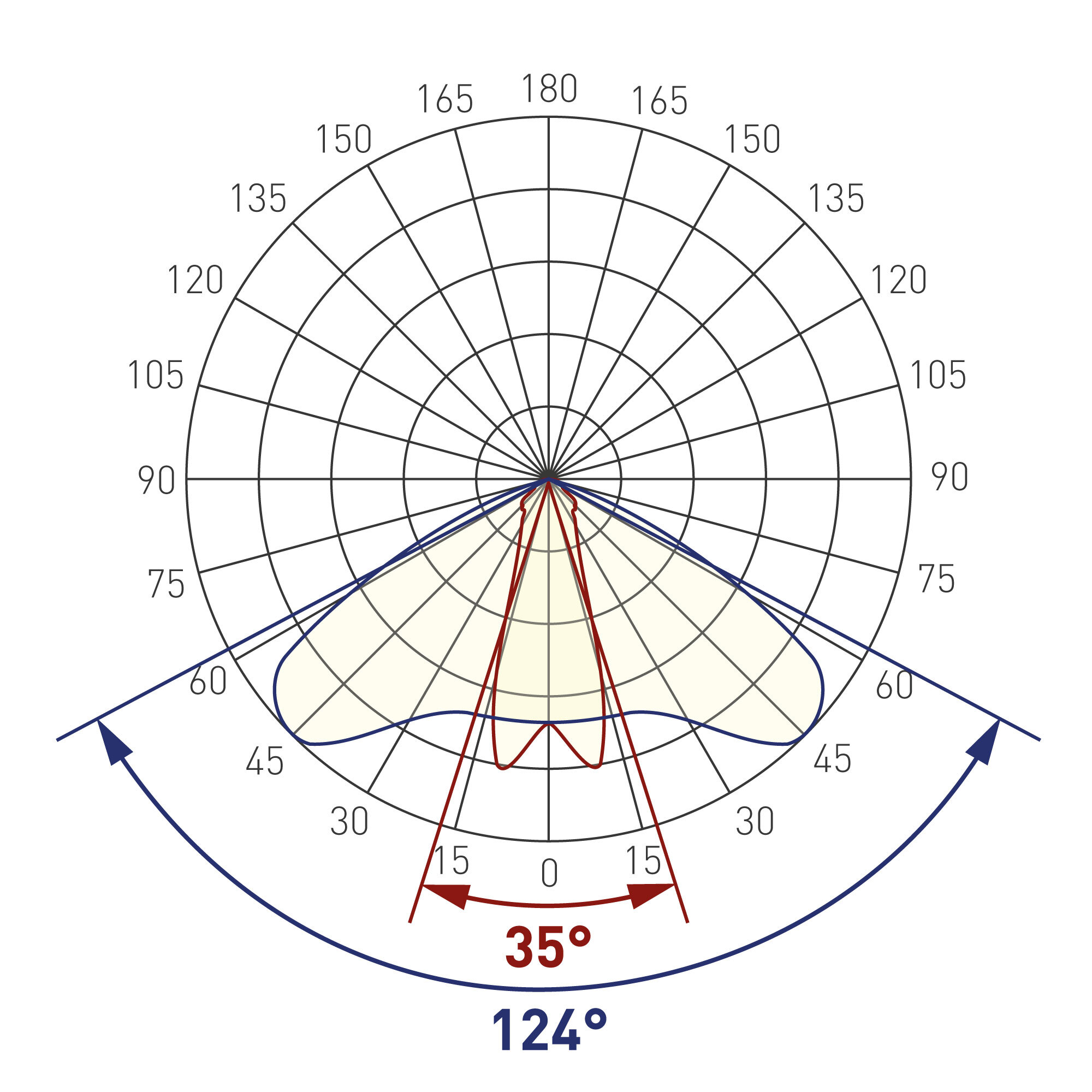 Прозрачный экран с фокусирующей линзой. При установке на профиль угол свечения: для PDS-REGULOR - 10/30/45/60/90° (зависит от положения вставки), для профилей PDS - 10°, MIC - 60°. Светопропускание 80%.