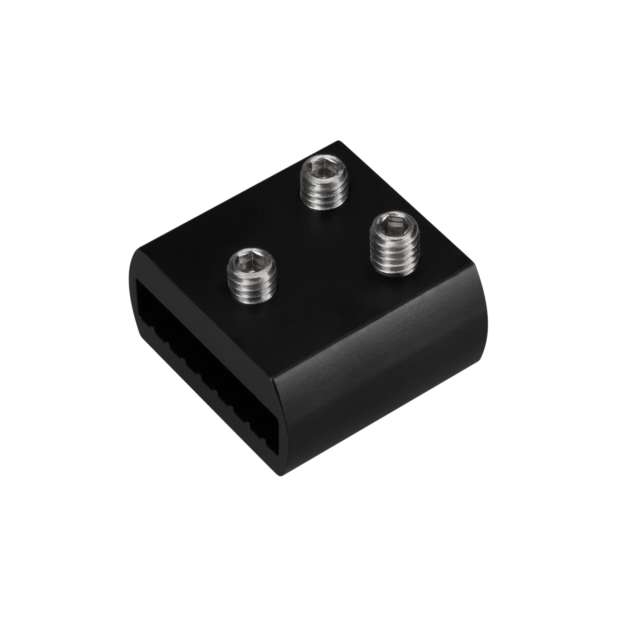 Фиксатор ремня ART-INBELT-FIX для токопроводящего ремня серии ART-INBELT. Сильная затяжка запрещена. Размеры: 20x21,5x11 мм. Цвет: черный. Материал: алюминий + сталь. Монтажный крепеж поставляется в комплекте.