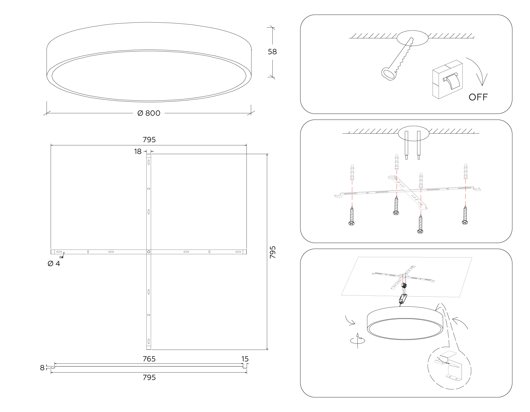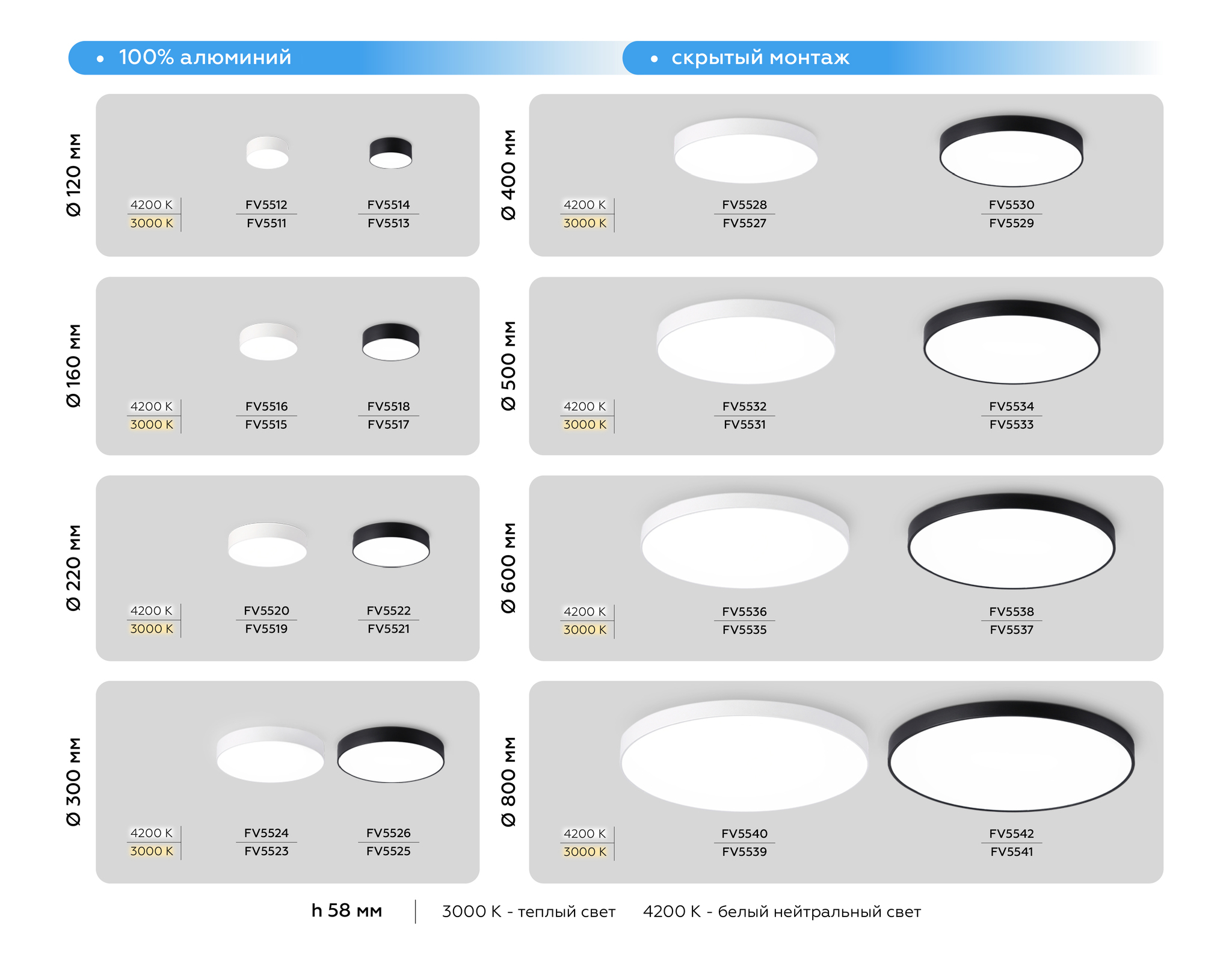 Светильник светодиодный потолочный FV5540 WH белый LED 130W 4200K D800*58 (Без ПДУ)