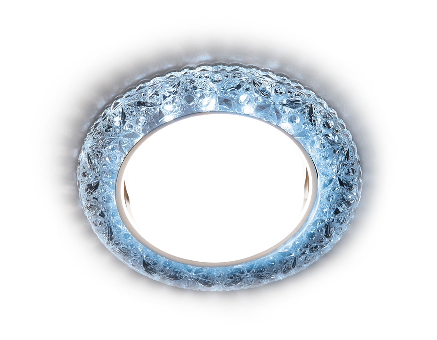 Встраиваемый точечный светильник серии GX53 SPOT. Модель G308CL/CLD выполнена в современном стиле Постмодернизм, круглой формы. Светильник изготовлен из пластикового декора прозрачного цвета и металлического корпуса. Особенностью этой модели является дополнительное светодиодное освещение. Эти модели будут украшением для любого помещения. Для светильников этой коллекции подойдут лампы типа GX53.