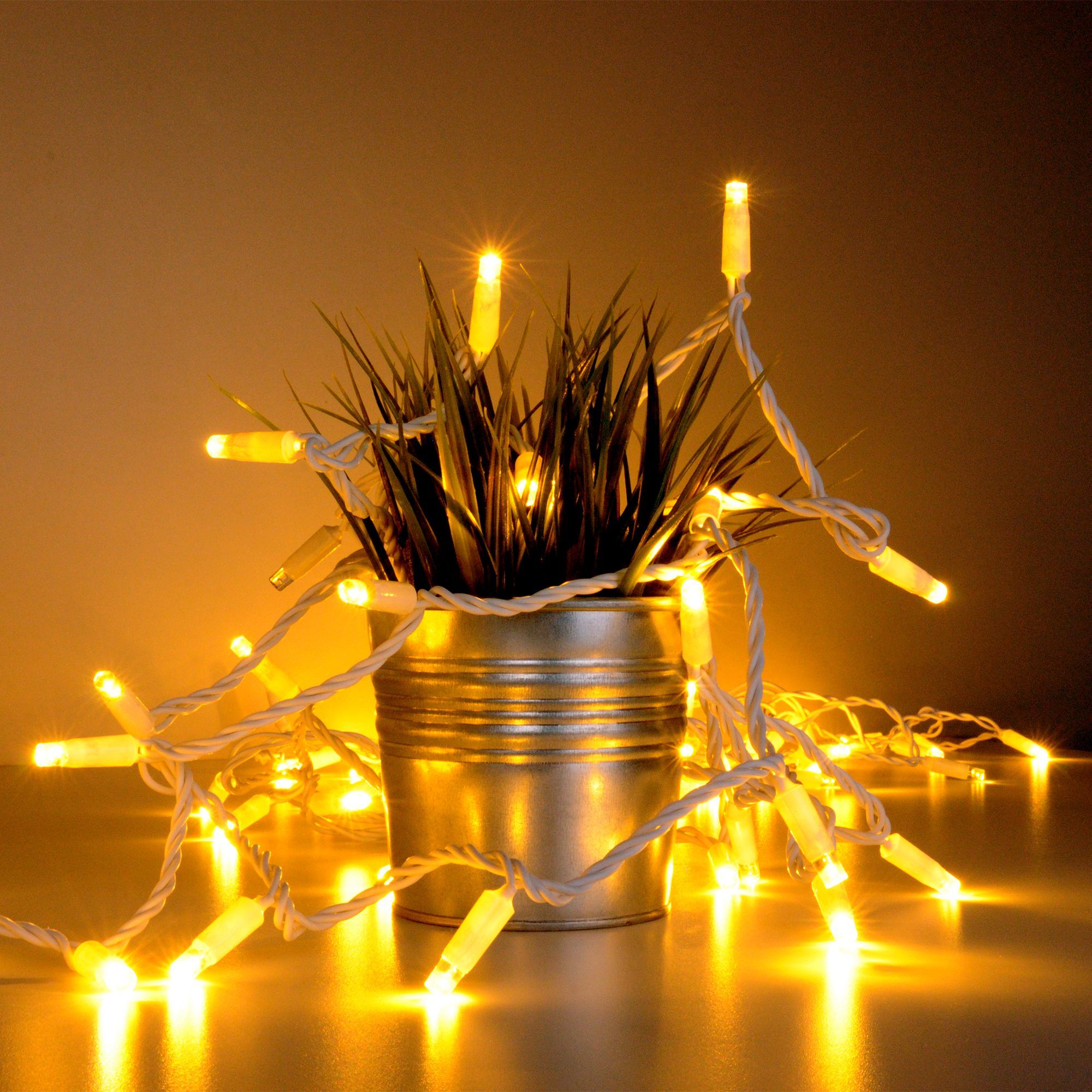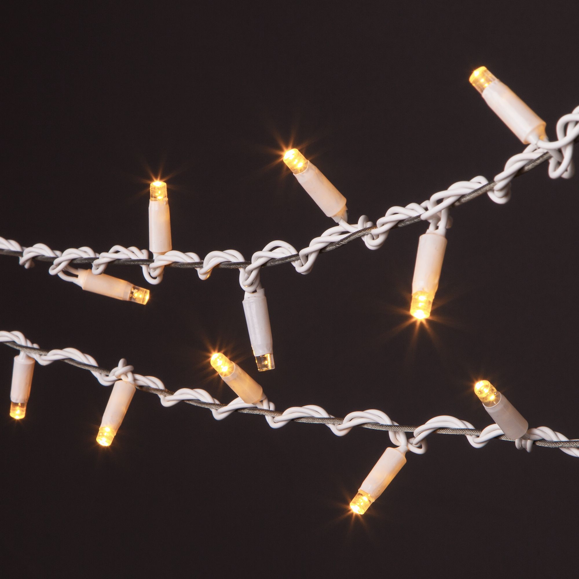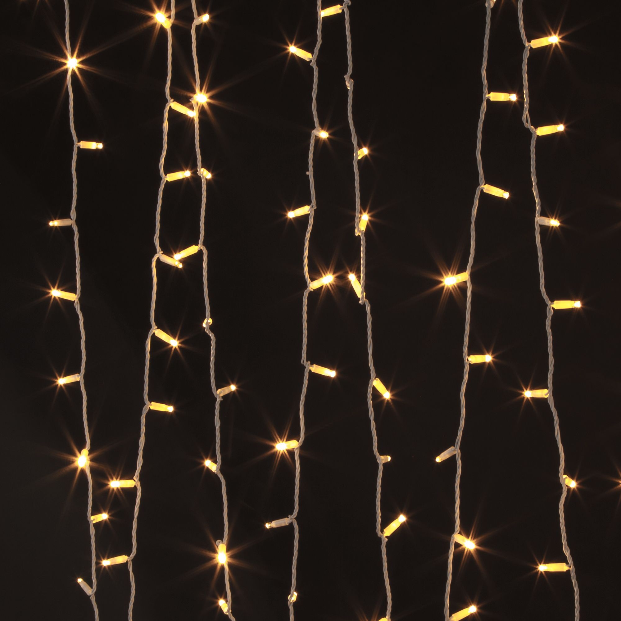 Гирлянда состоит из светодиодов красного, зеленого, желтого и синего цвета. Каждый пятый светодиод мерцает с интервалом 0,5 секунд. За счет этого эффекта гирлянда становится динамичной. Наличие коннектора на окончании гирлянды позволяет соединять последовательно до 20 гирлянд. Гирлянда оснащена вилкой и работает от сети 220 В / 50 Гц.